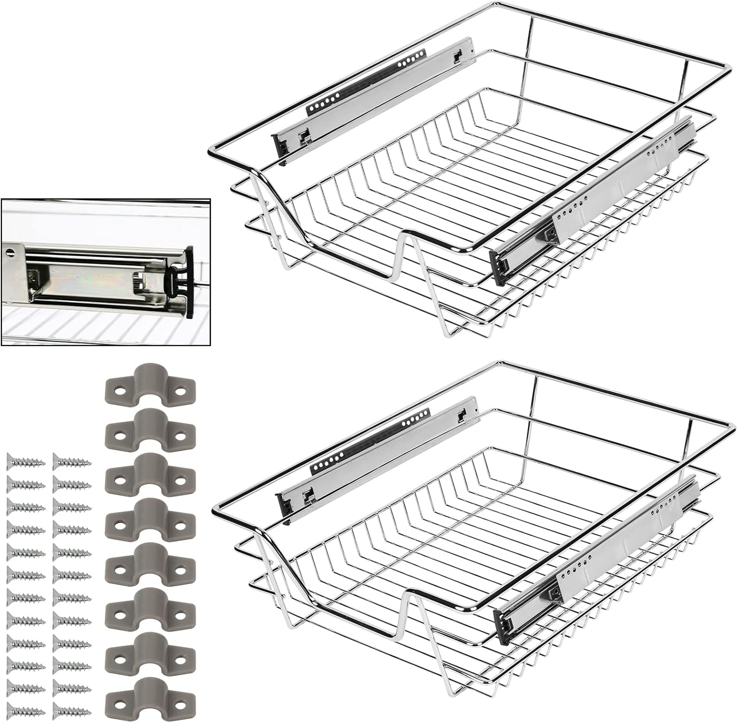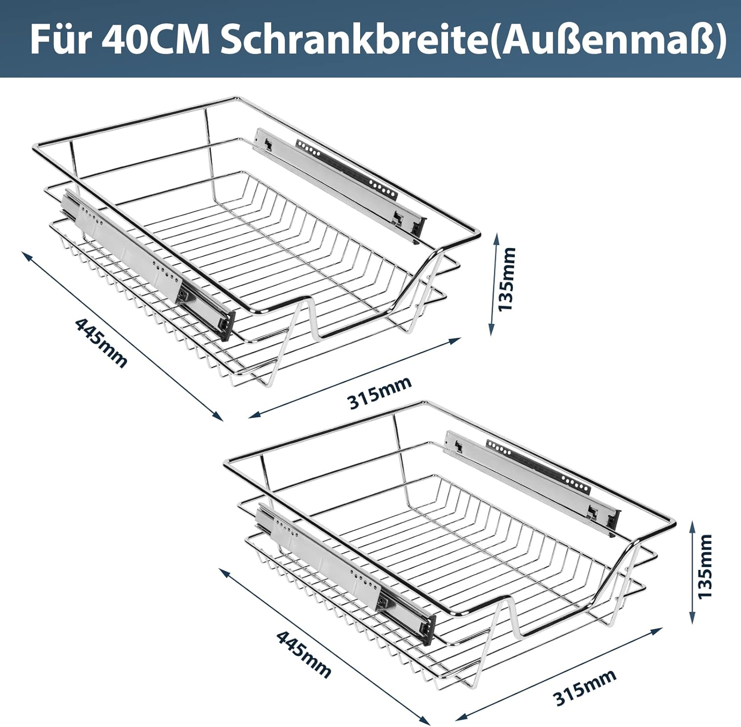 - 【Hohe Qualität】Der Schubladeneinsatz besteht aus verchromtem Eisen und kann bis zu 20 kg tragen. Das Schienensystem - einschliesslich ausziehbarer Schienen und hängender Körbe - bleibt immer sicher und stabil.