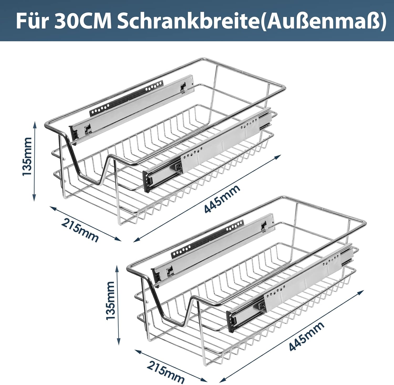 • 【Hohe Qualität】Die Korbauszüge bestehen dabei aus verchromten Metall mit verzinkten Führungsschienen. Die Teleskop-Schubladen lassen sich dabei komplett ausziehen, bleibt immer sicher und stabil.