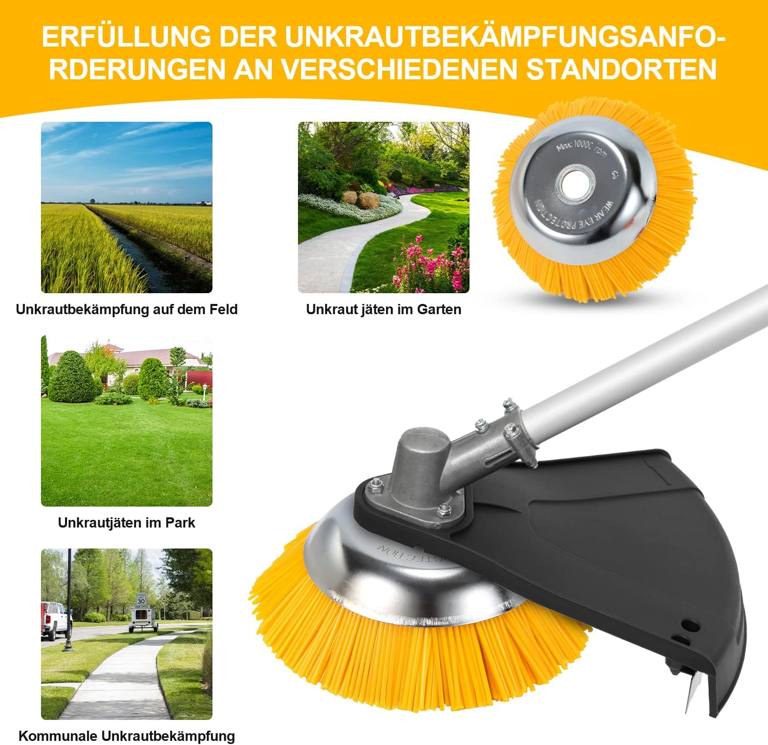 - 🌱Weed Brush kann schnelle und einfache Montierung und Demontierung. Montieren Sie diese Bürste an ihrem Trimmer und beginnen wie gewohnt. Befreien Sie sich vom Knien und Bücken, Lösen Sie Unkraut-Aufgaben einfach.