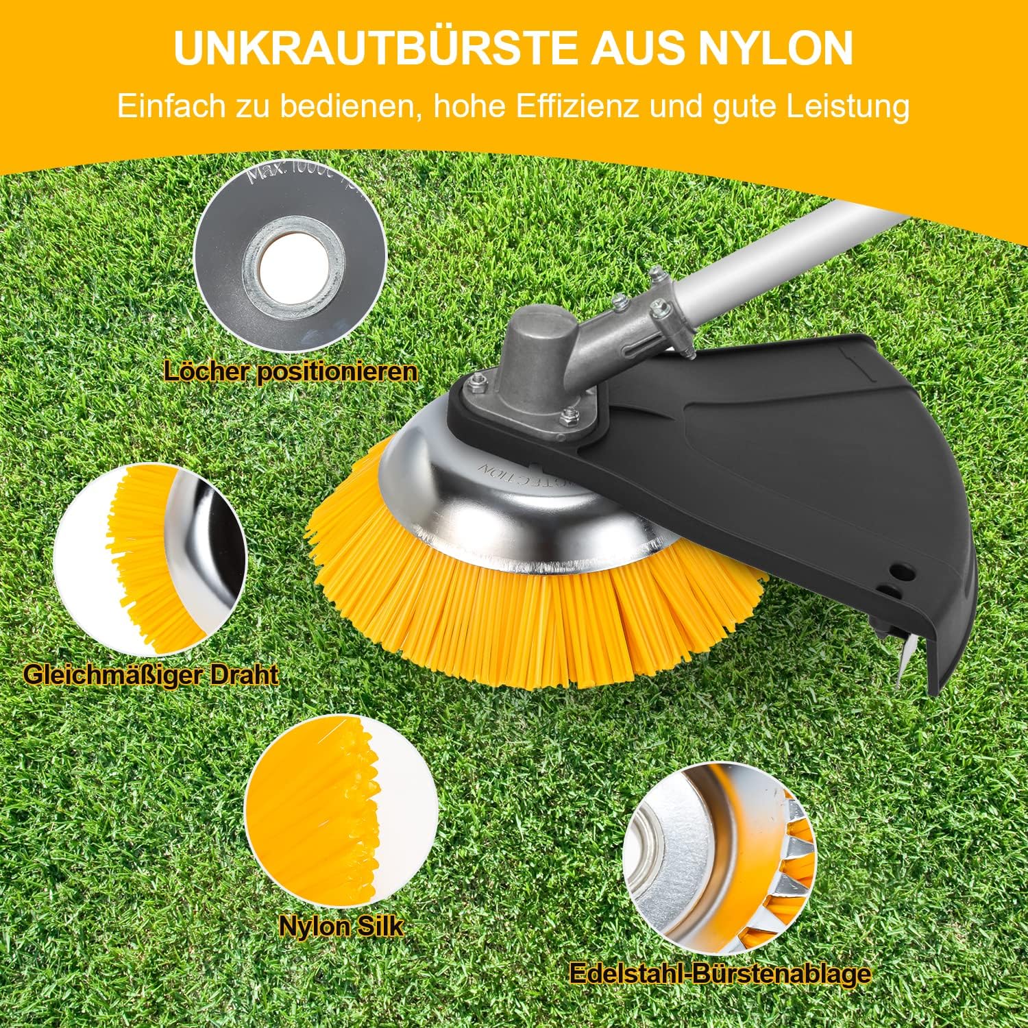 - 🌱Hervorragende Rotationsbalance reduziert die Ermüdung des Bedieners und verbessert die Lebensdauer des Werkzeugs. Die äussere Nylon ist leicht mit Wasser und Seife zu reinigen, so dass Sie sich keine Sorgen über Unkraut in Ihrem Aufenthalt machen müssen.