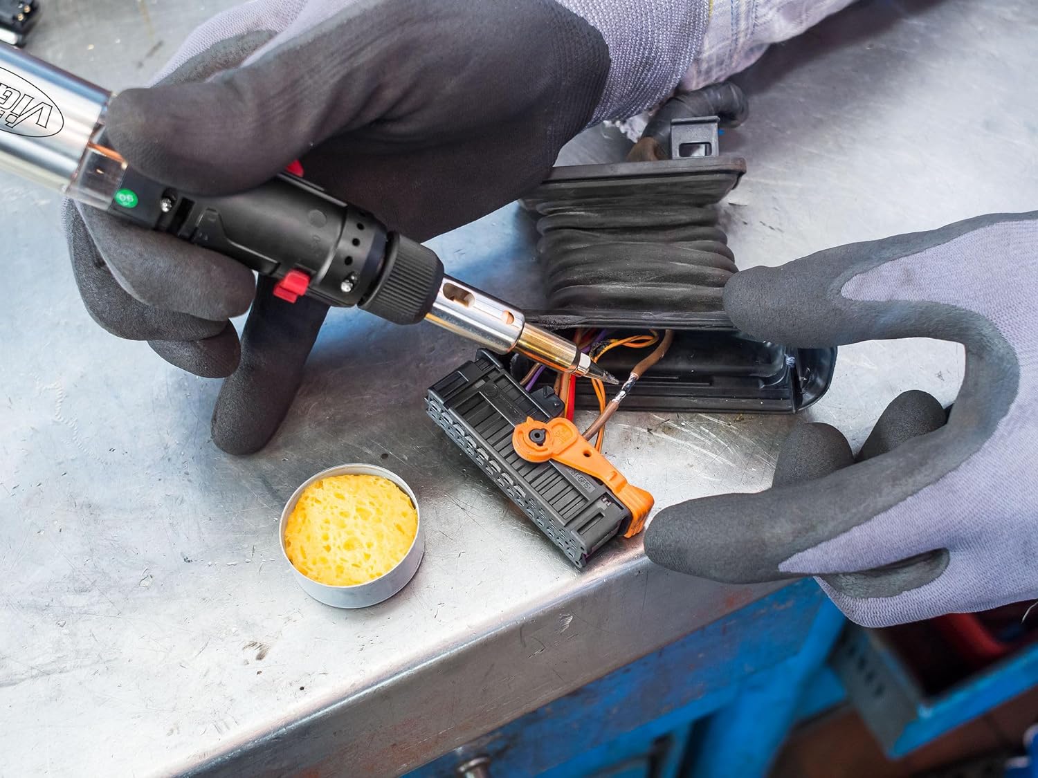 - Für Löt-, Schmelz-, Schrumpf-, Heissschneidarbeiten durch 7 verschiedene Adapter