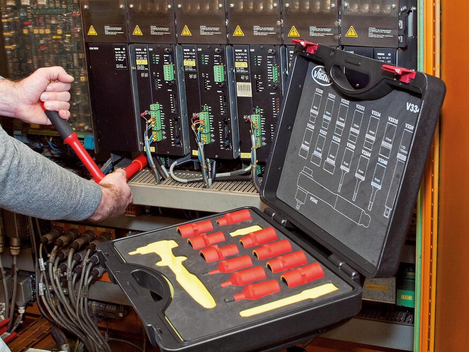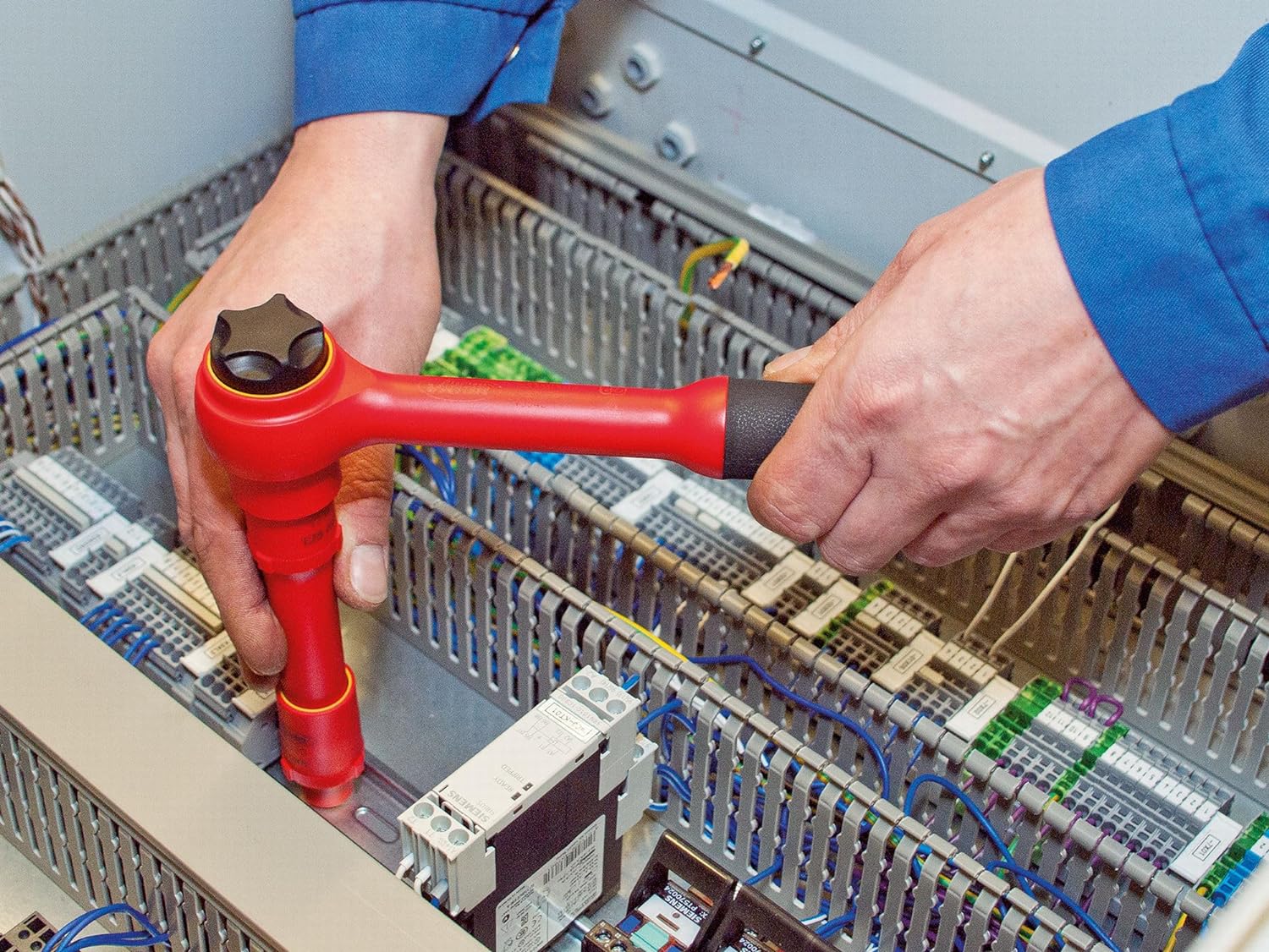 - Aussenvierkant Antrieb 12,5 = 1/2 Zoll VDE Feinzahn-Umschaltknarre, isoliert, Länge 255 mm (V3342).