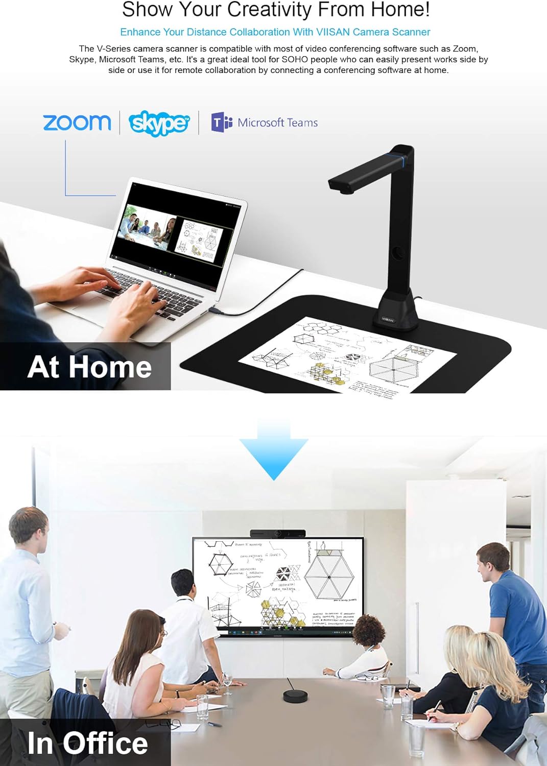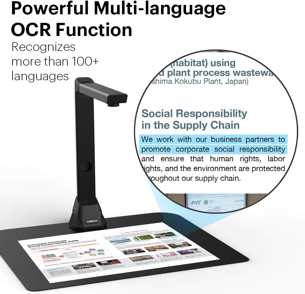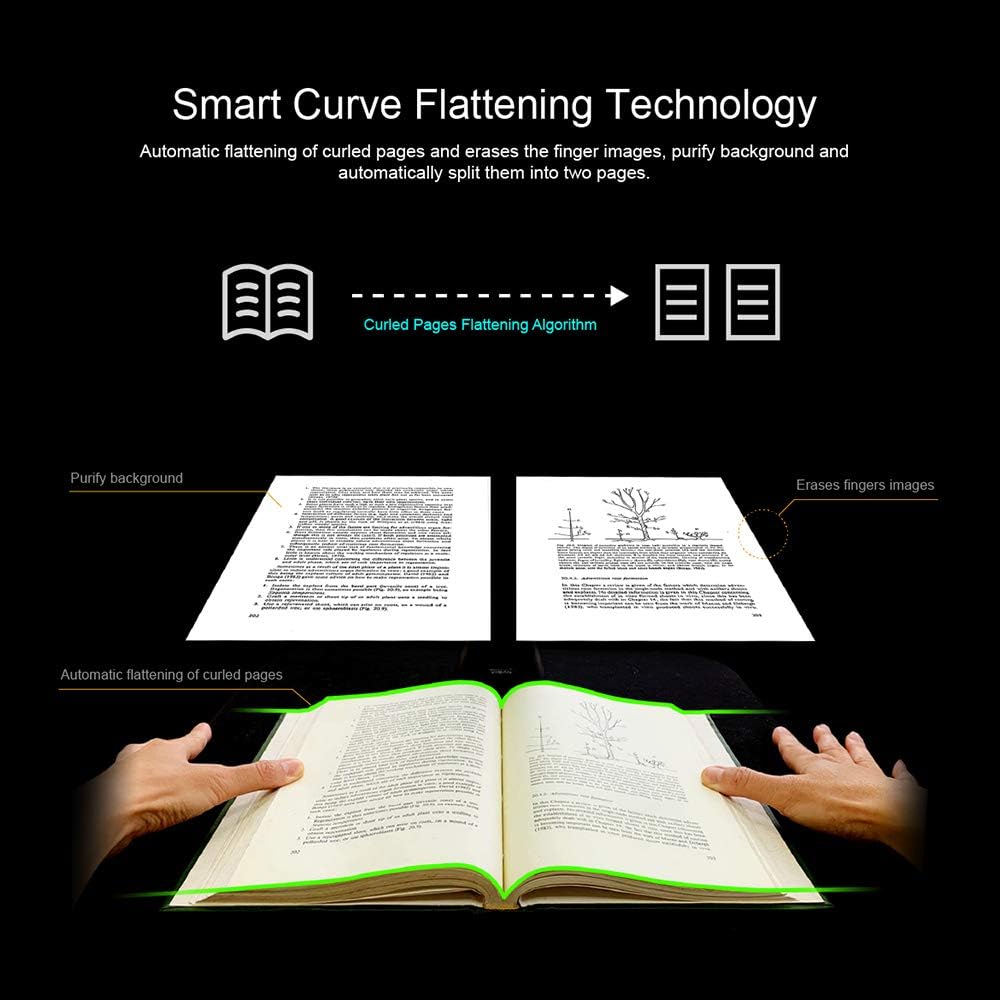 - [Flatten Curve Technology] Dank der Intelligente Algorithmus der mitgelieferte Software „Viisan OfficeCam“ erkennt VK16 die Krümmung der Buch-Doppelseiten, flacht automatisch die Wölbung ab, korrigiert störende Schatten, teilt das Bild in 2