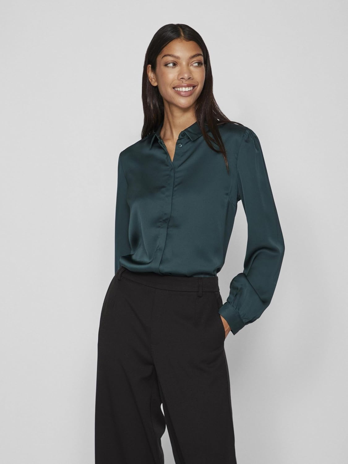 PRODUKTBESCHREIBUNGEN Mit der bezaubernde Bluse für Damen von VILA lassen sich einfach neue Styles kombinieren. Sie überzeugt mit ihrem leichten und fallenden Stoff. Die schlichte Bluse mit V-Ausschnitt, Reverskragen und durchgehender Knopfleiste sorgt für einen femininen Look. Ein schöner Office-Look ergibt sich, wenn man die Bluse mit Jeans und Blazer kombiniert. Lässig wirkt sie im Stilmix mit ausgewaschenen Jeans und knöchelhohen Chucks.