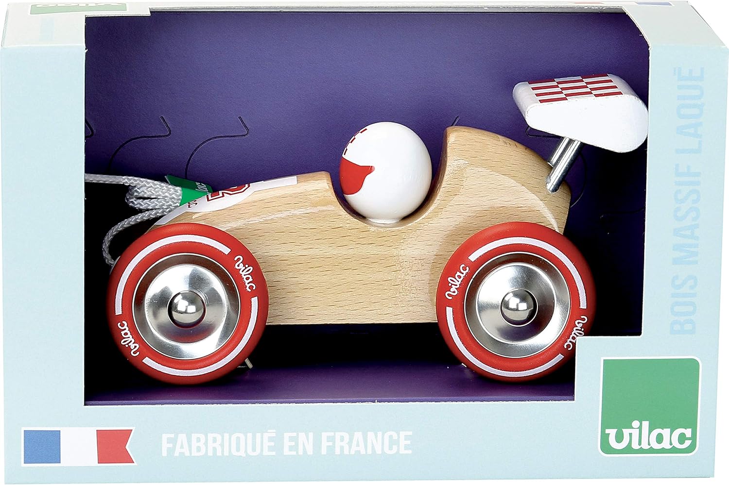 Vilac 2309S Voiture de Course à Trainer Bois Naturel Flugzeuge, Natur Nachzieh-Rennwagen Natur, Nach
