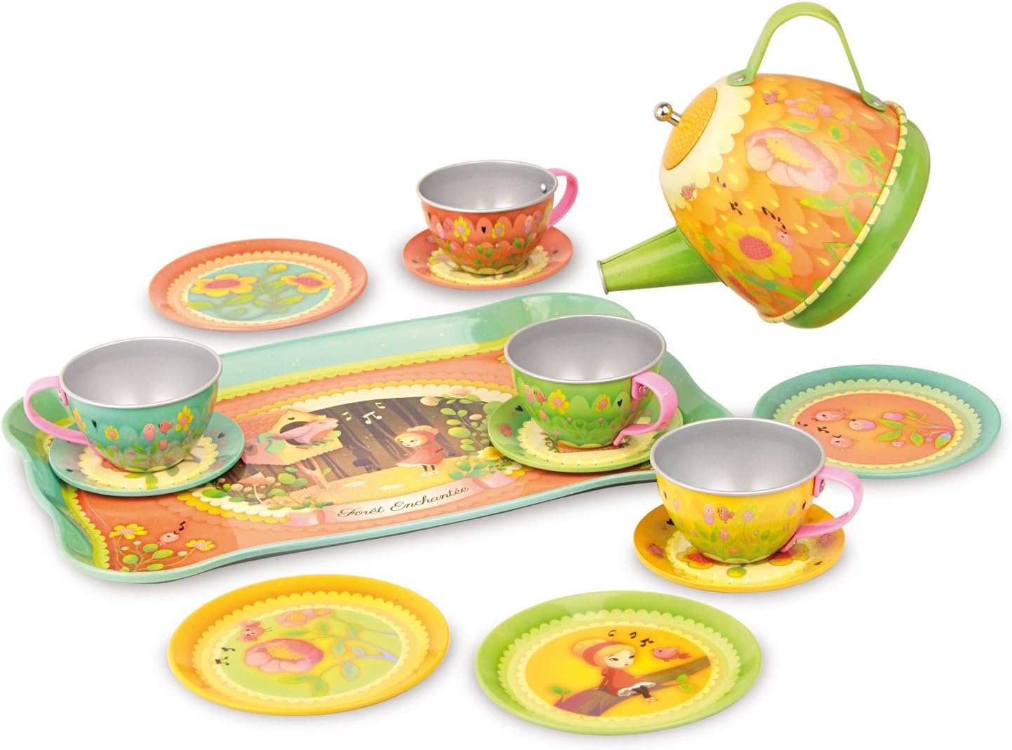 • Produktbeschreibung: 14-teiliges Musik-Dinsel aus Metall. Wenn man die Teekanne bückt, geht eine sanfte Melodie ein.