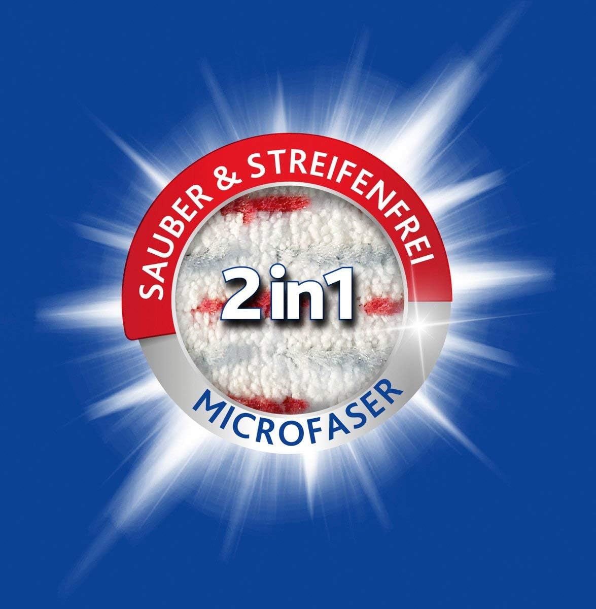 • Dank seiner 3D-Struktur und Kraftfasern gleitet der Microfaserbezug leichtläufig über den Boden und hinterlässt glänzende und streifenfreie Reinigungsergebnisse
