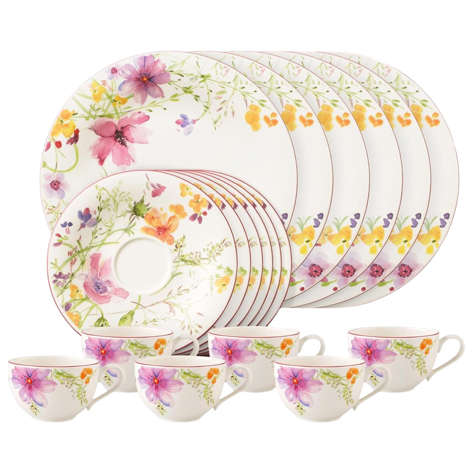 - Tafelservice für 6 Personen: Zum 18-teiligen Villeroy & Boch Mariefleur Basic Kaffee-Service gehören 6 Kaffeeta-ssen mit Unterta-ssen sowie 6 Frühstücksteller (1041007128).