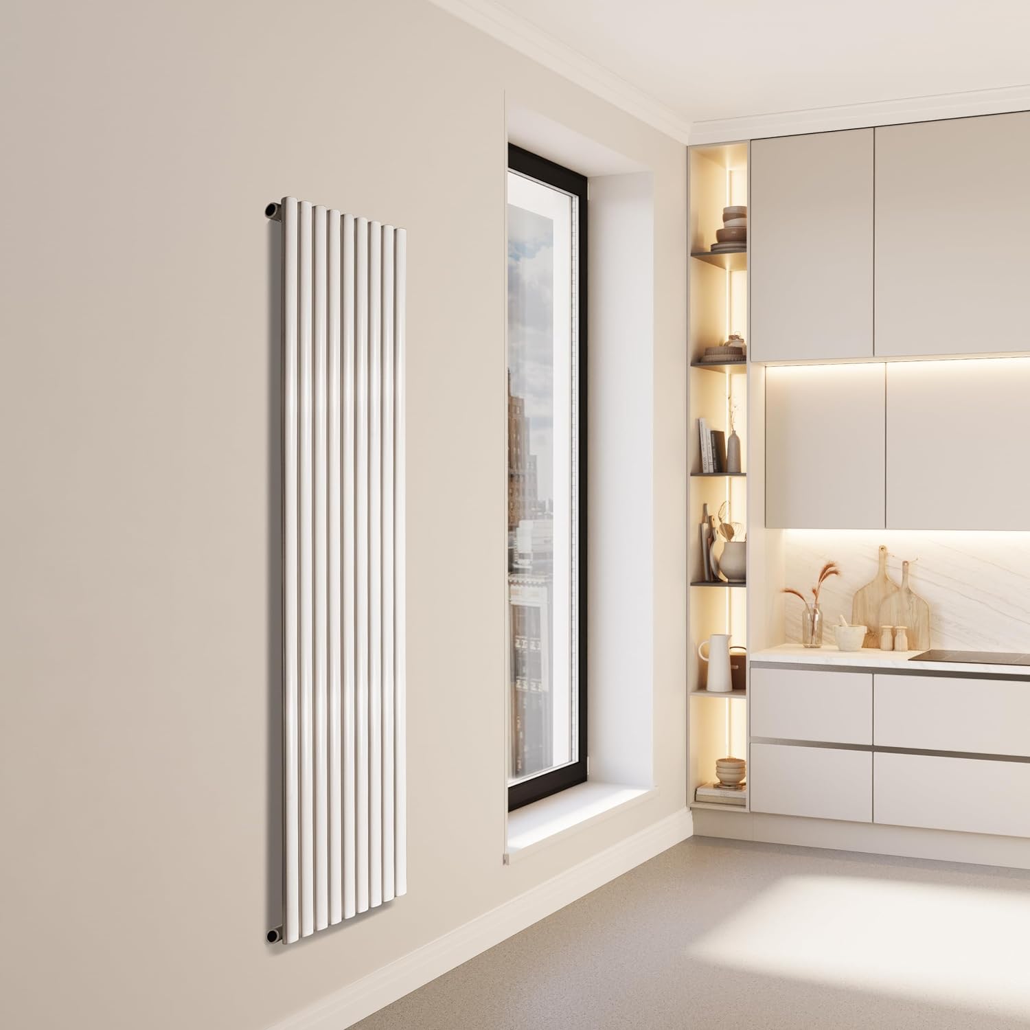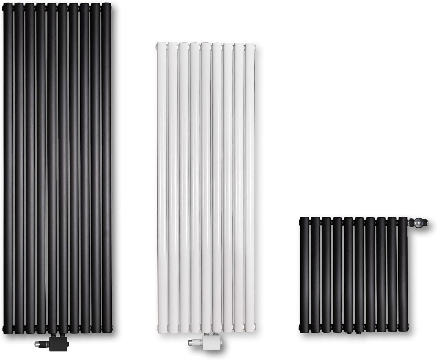 - Modernes Design: Gerade Heizpaneele mit flachen Profilen fügen sich dank ihrer matten schwarzen Oberfläche harmonisch in sämtliche Raumkonzepte ein und erwärmen den Raum gleichmässig und schneller als alte Gusseisen Heizkörper