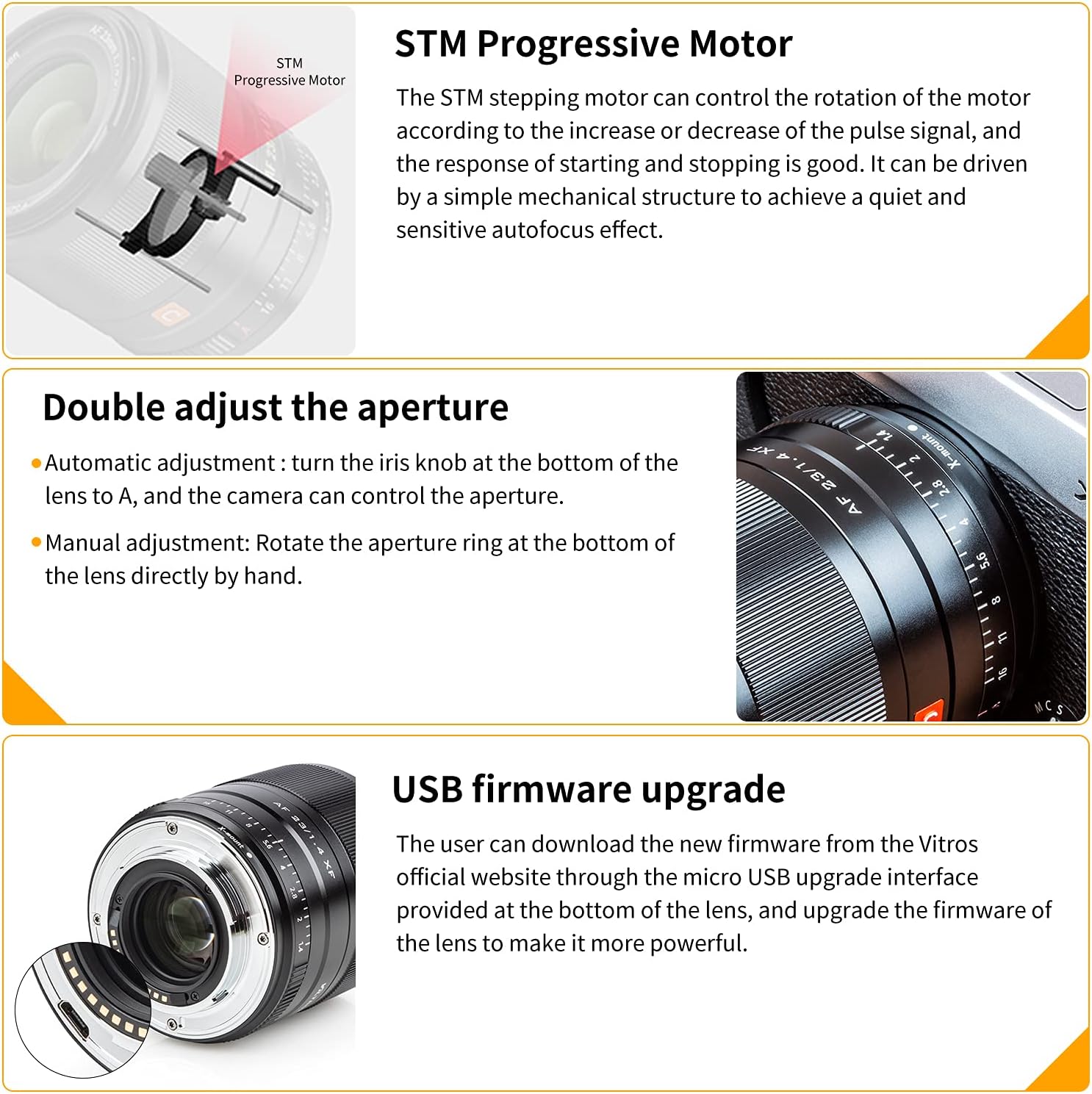 - 📷【F1.4 grosse Blende】Viltrox AF 23 mm f1.4 XF ist ein grosses Weitwinkel-Objektiv, das speziell für Fuji X-Mount-Kameras entwickelt wurde. Die Brennweite dieses Objektivs beträgt 35 mm, was für eine Vielzahl von Szenen geeignet ist, mit grossem