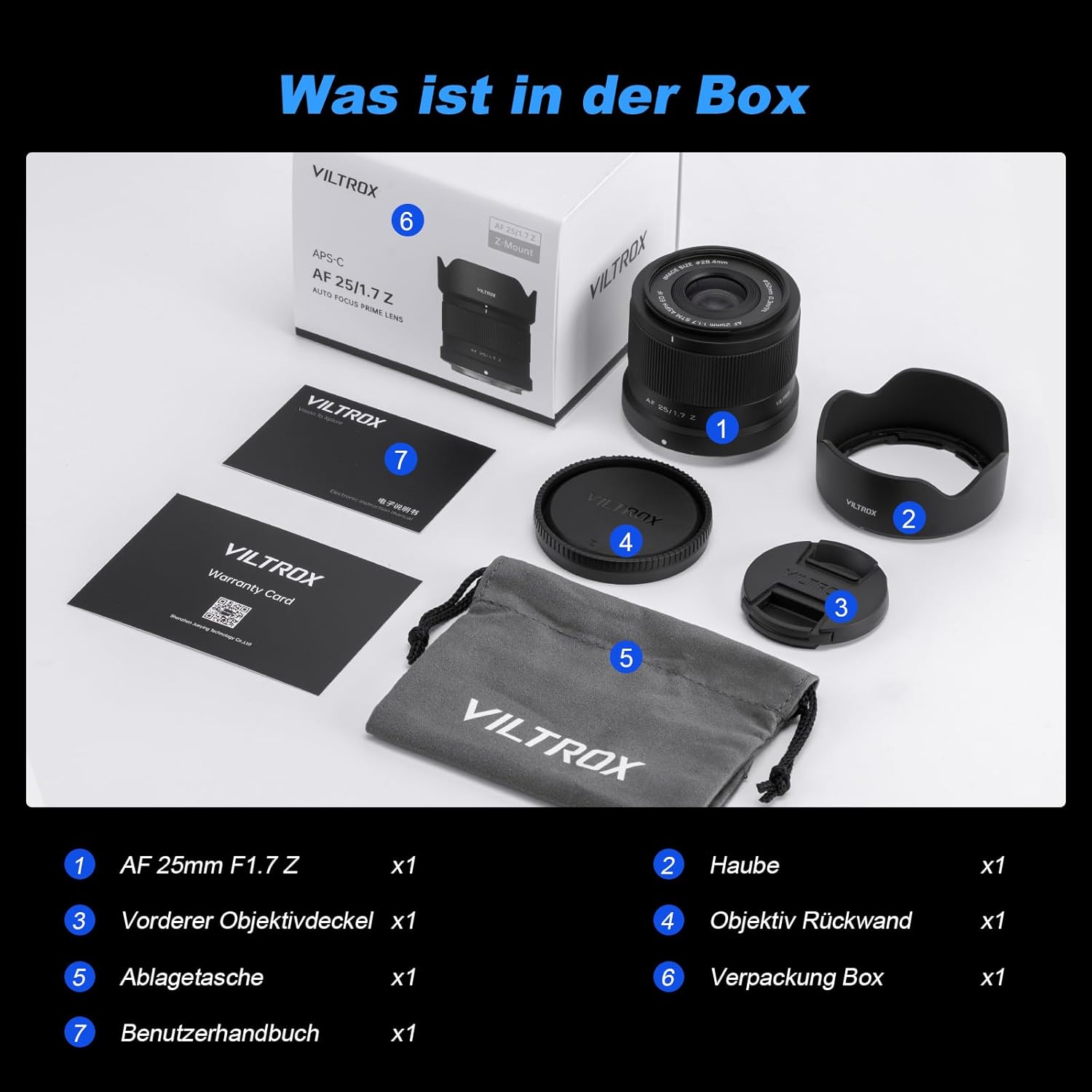 - đăHervorragende BildqualitĂ€tăViltrox aps-c af 25/1,7 z mit high-definition-auflösung,klare und scharfe in-Fokus,weiche out-of-fokus bokeh,die schaffung von lebendigen und zarten bild Textur,bildgebung farbwiedergabe, geniessen Sie eine klare