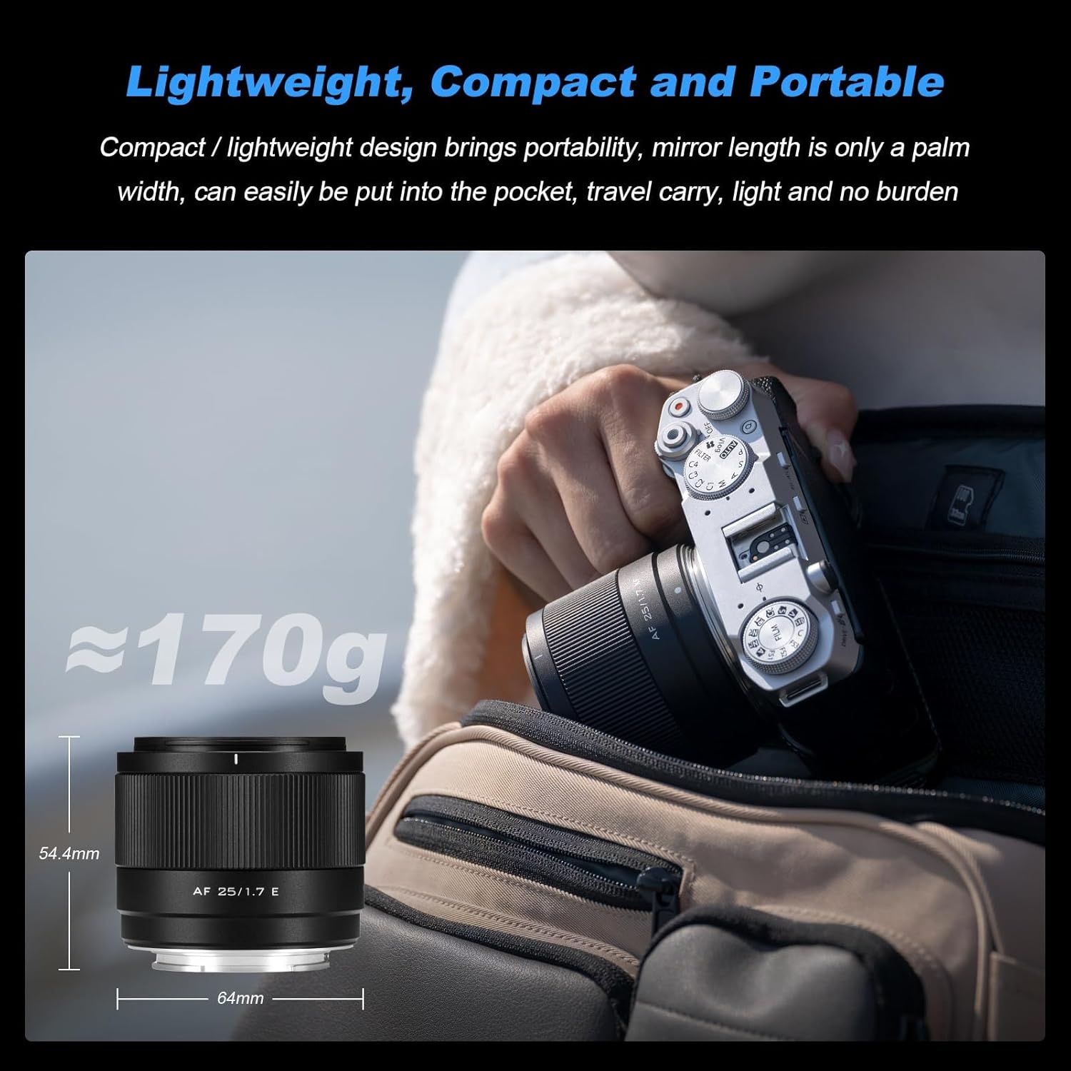 - đăEffizienter und ZuverlĂ€ssiger AFăViltrox 25mm f1.7 z-mount objektiv ist mit einem viltrox stm silent-motor fĂŒr prĂ€zisen und schnellen autofokus ausgestattet,der auch fĂŒr anfĂ€nger leicht zu bedienen ist.Viltrox 25mm air f1.7 z-objektiv