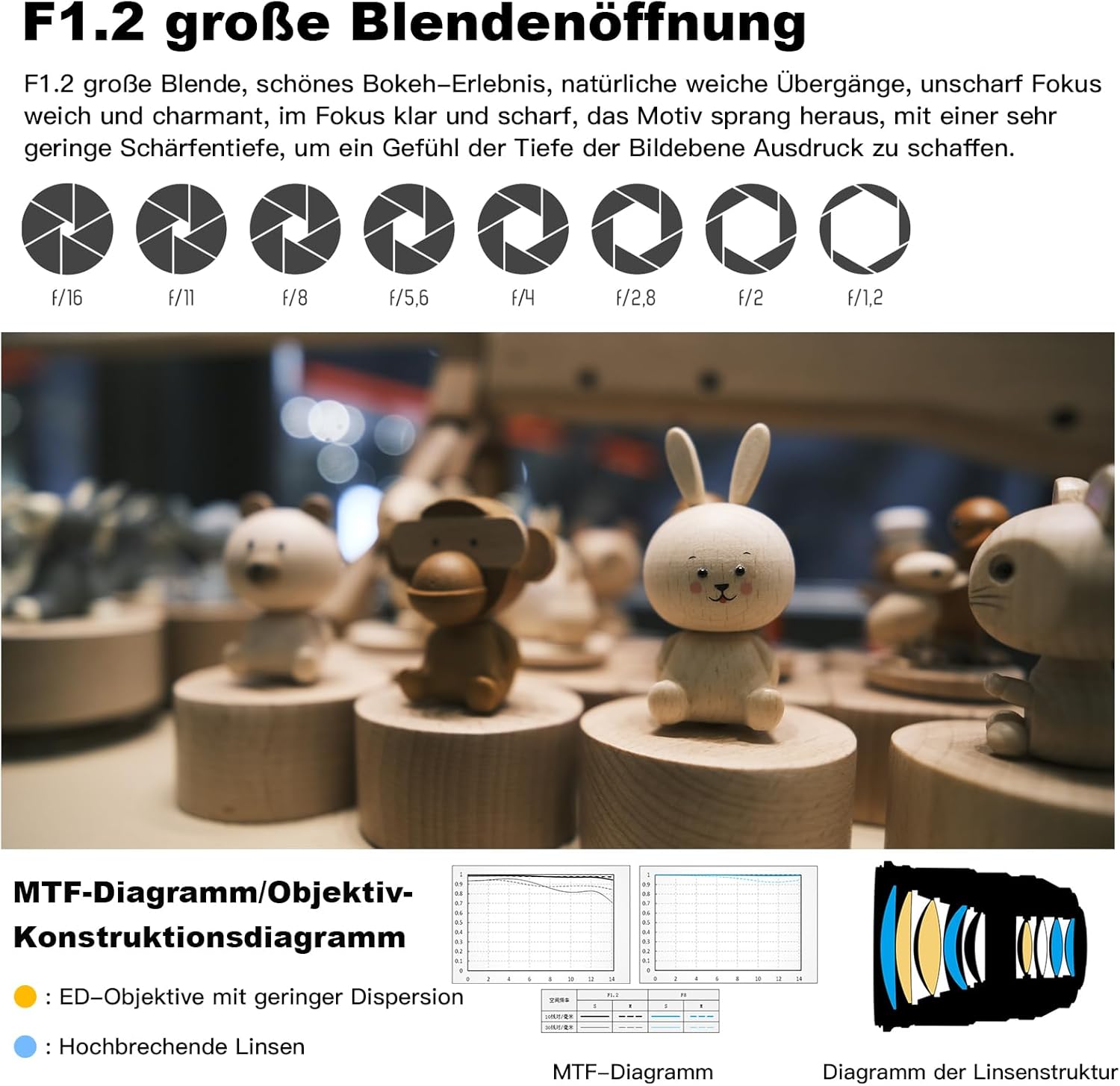 • 💚【F1.2 Super Large Aperture】VILTROX 75mm F1.2 Pro APS-C Unprecedented F1.2 ultra-grosse Apertur.Ultimat schöne Bokeh Erfahrung, natĂŒrliche und glatte transitior weich und charmant out-of-Fokus, klar und scharf in-Fokus, lebendig wie das Thema
