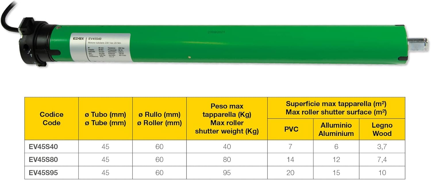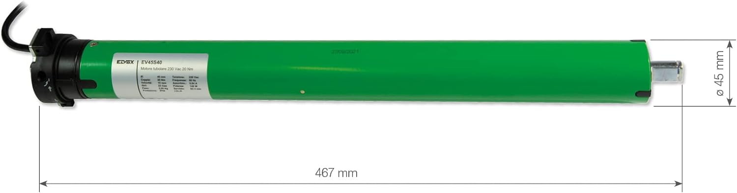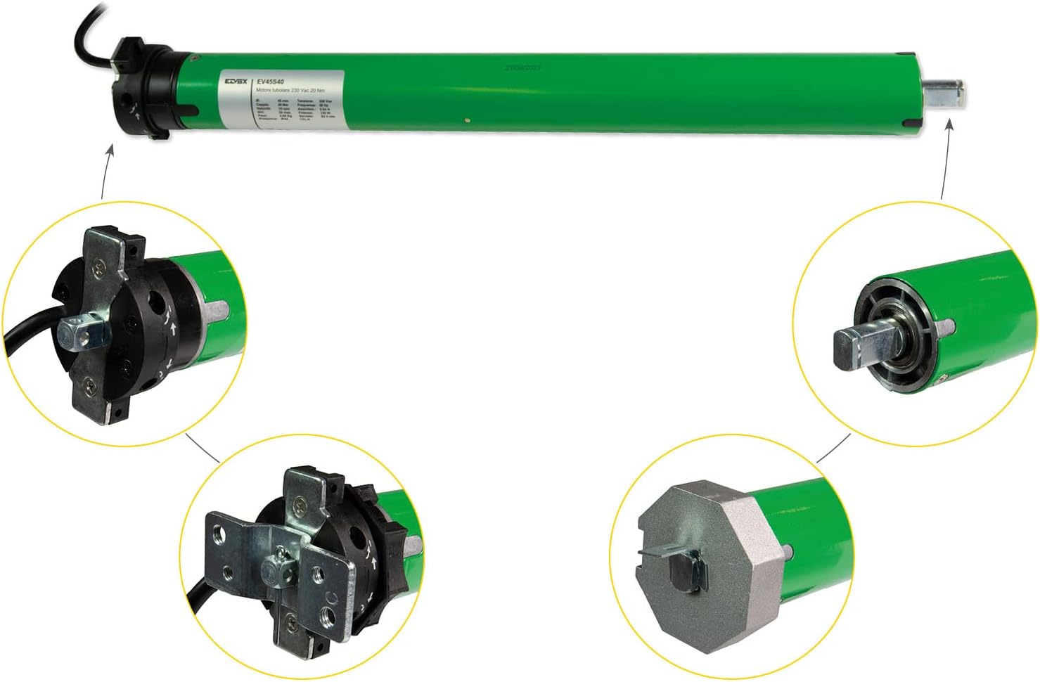 - Vimar EV45S40 Rohrmotor für Rollläden, 230 V~, 40 kg Hubkraft, für den privaten und gewerblichen Gebrauch, 60 mm achteckiger Adapter, komplett mit Befestigungsklammern