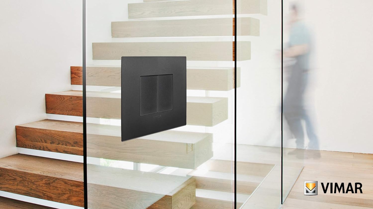 - Vimar 0K03925.07 Arké Set mit vier Tasten VIEW Wireless Standard Bluetooth Lieferumfang: 1 x Steuerung 03925, 1 x Halterung 19507.CL grau, 2 x 19506 grau, 1 x Platte 2 Module 19642.71 schwarz