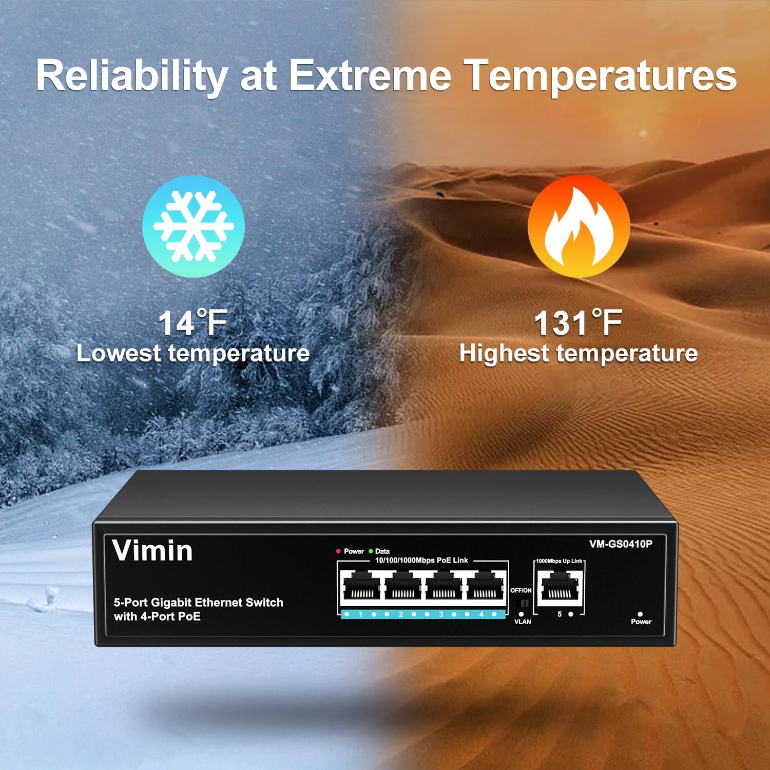 VIMIN 4-Port Gigabit PoE Switch mit 1 Uplink Gigabit Port, 5-Port Unmanaged Ethernet PoE Switch mit