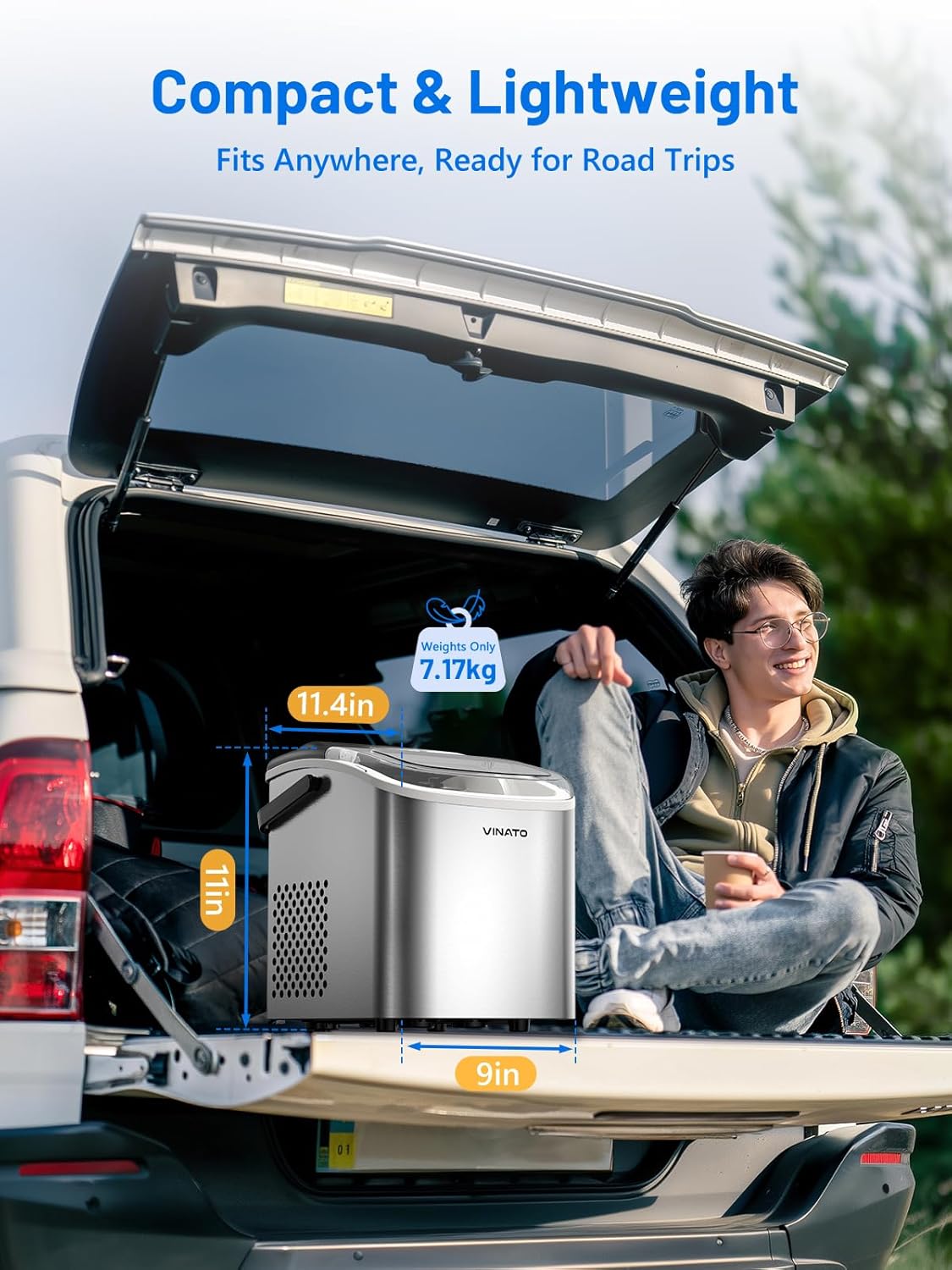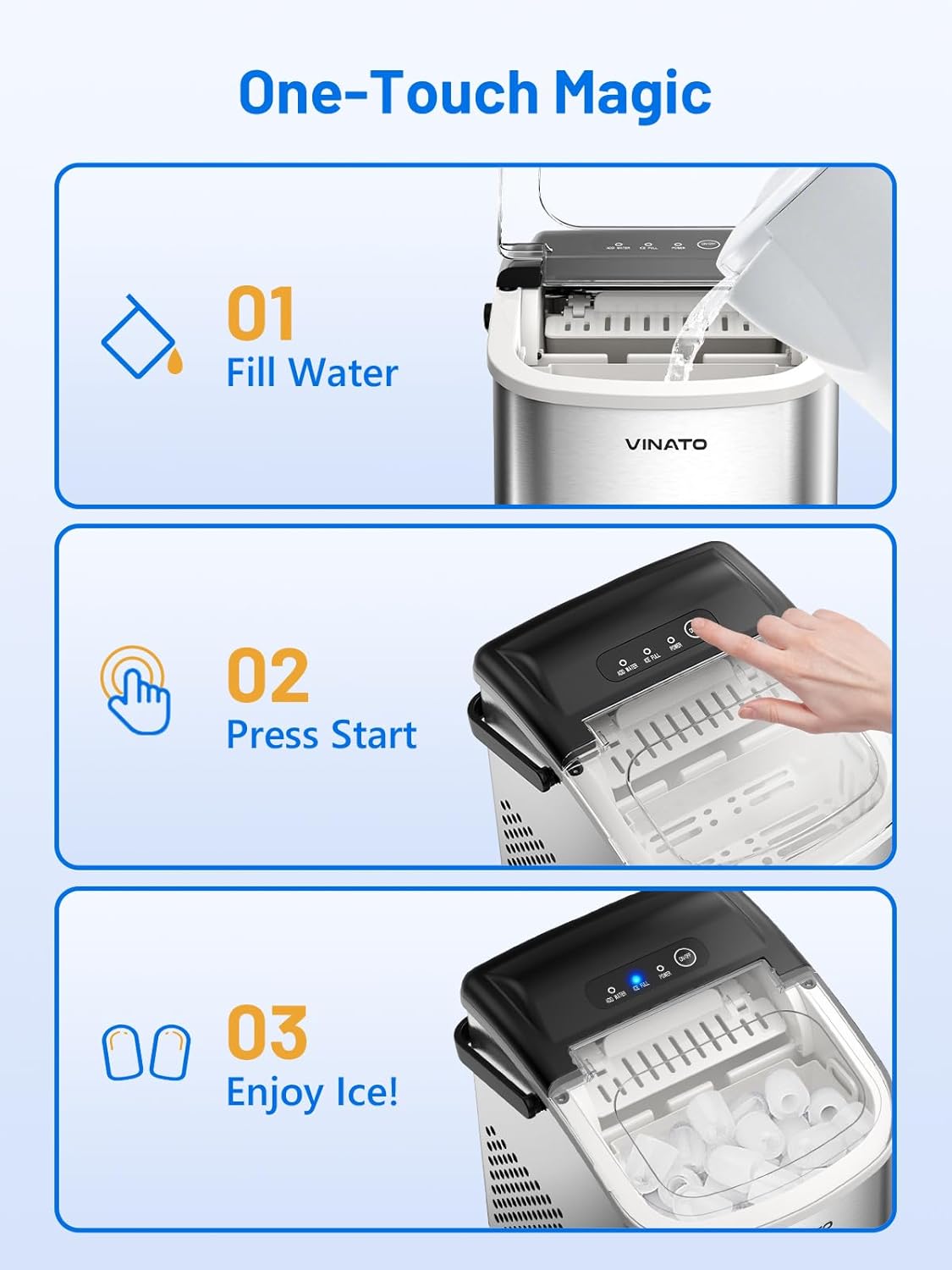VINATO Eiswürfelmaschine, Eiswürfelmaschine Klein, 9 Eiswürfel in Nur 6-8 Minuten, Tragbar Ice Cube