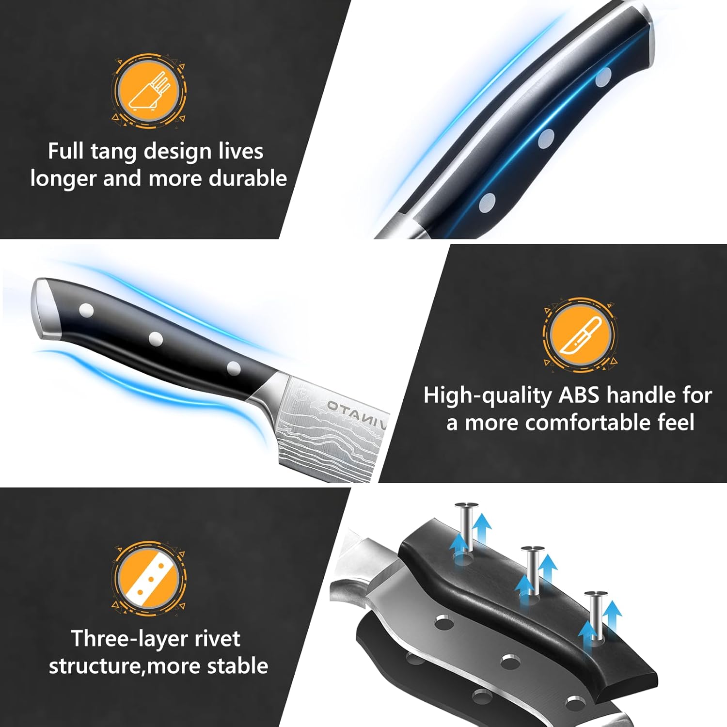 - 【Service & Garantie】Jedes Messerset von VINATO unterliegt einer strengen Qualitätskontrolle, einfach und schnell zu reinigen, das hochwertige Messerset ist das perfekte Geschenk für Valentinstag, Hochzeiten, Geburtstage, Einweihung, Thanksgiving,