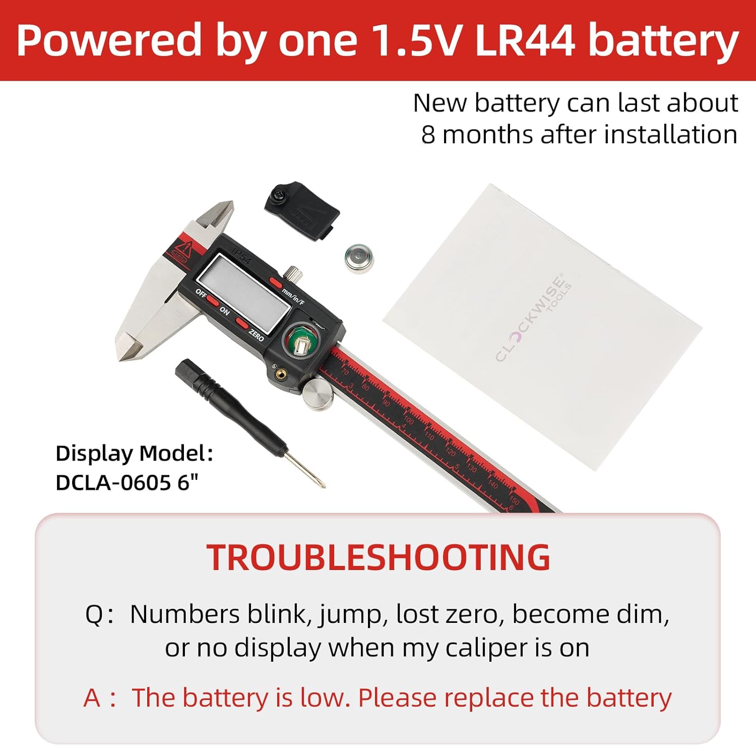 - VINCA DCLA-0605 Electronic Digital Caliper Inch/Metric/Fractions Conversion 0-6 Inch/150 mm Stainless Steel Body Red/Black Extra Large LCD Screen Auto Off Featured Measuring Tool