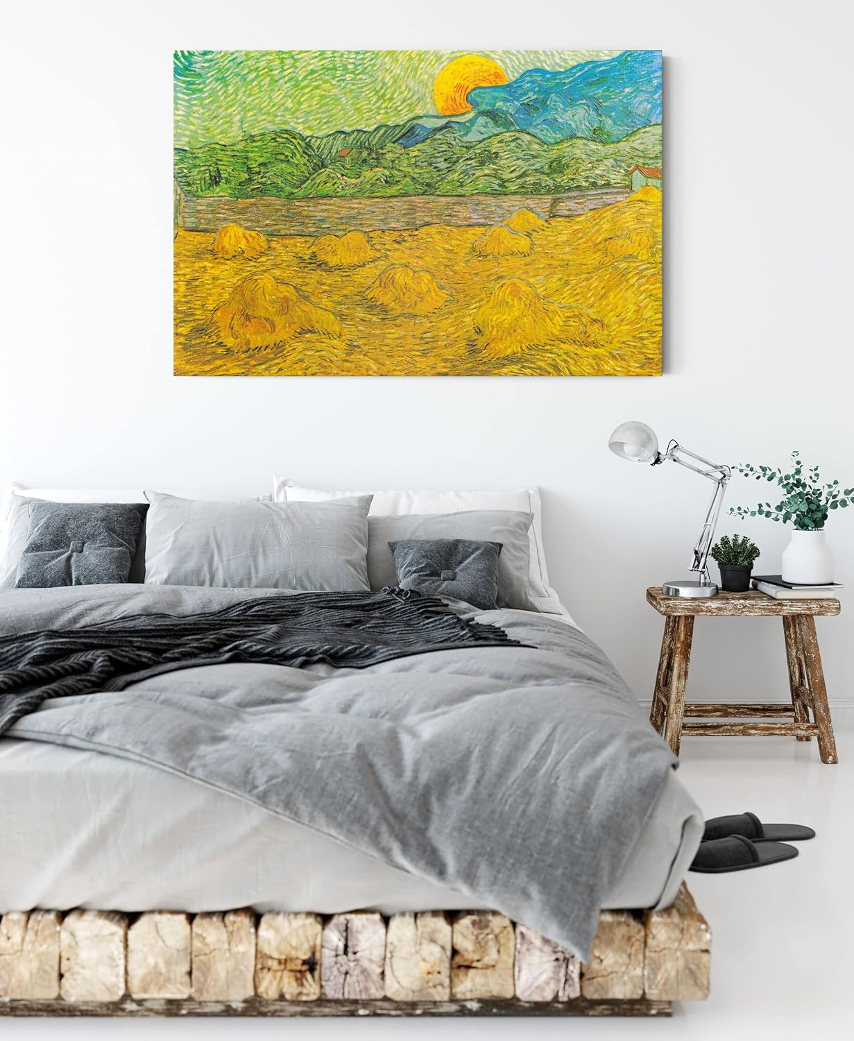 Vincent Van Gogh - Landschaft mit Weizenhaufen als Leinwandbild / Grösse: 100x70 cm / Wandbild / Kun
