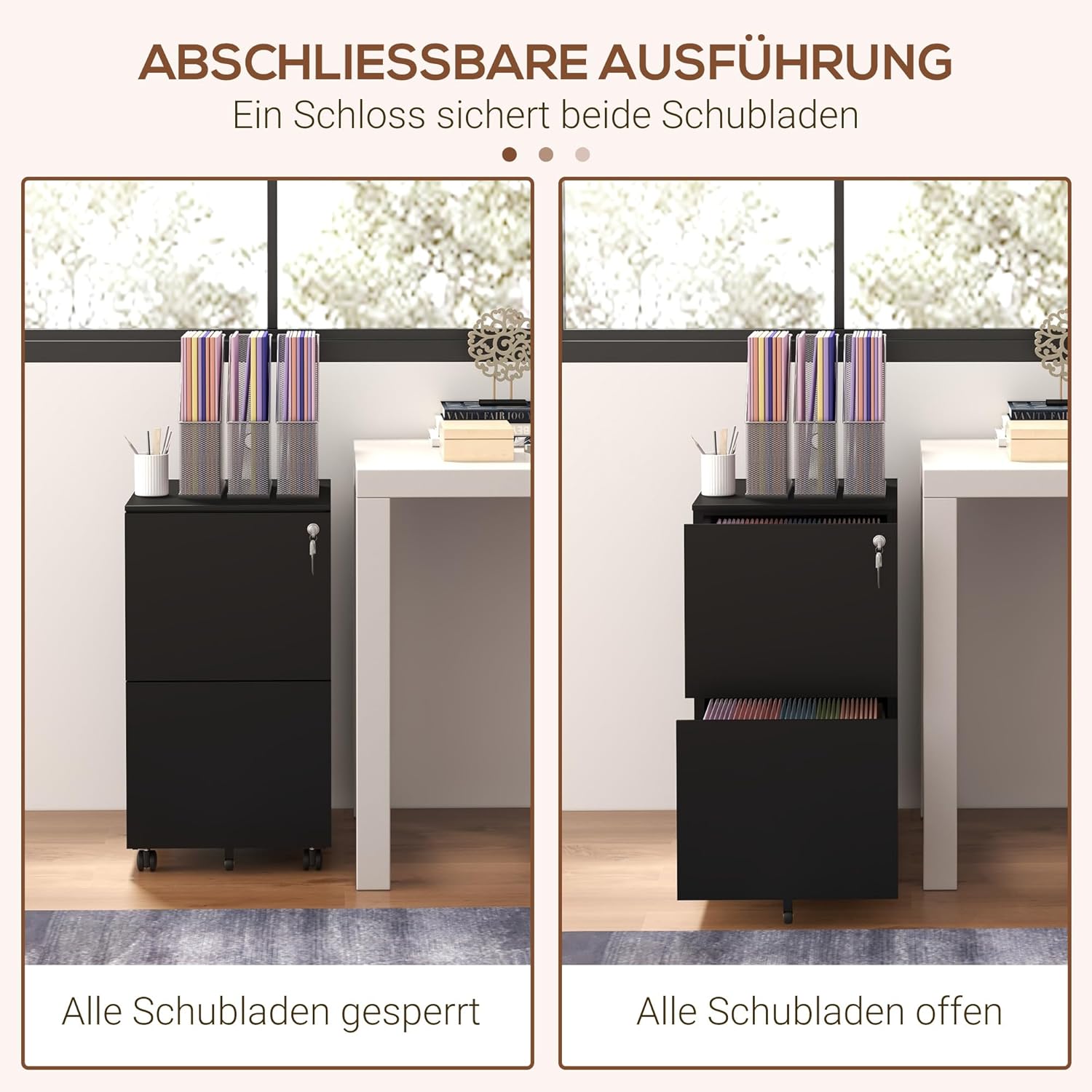 Vinsetto Rollcontainer Aktenschrank mit 2 Schubladen, Abschliessbarer Büroschrank mit Rollen, Büroco