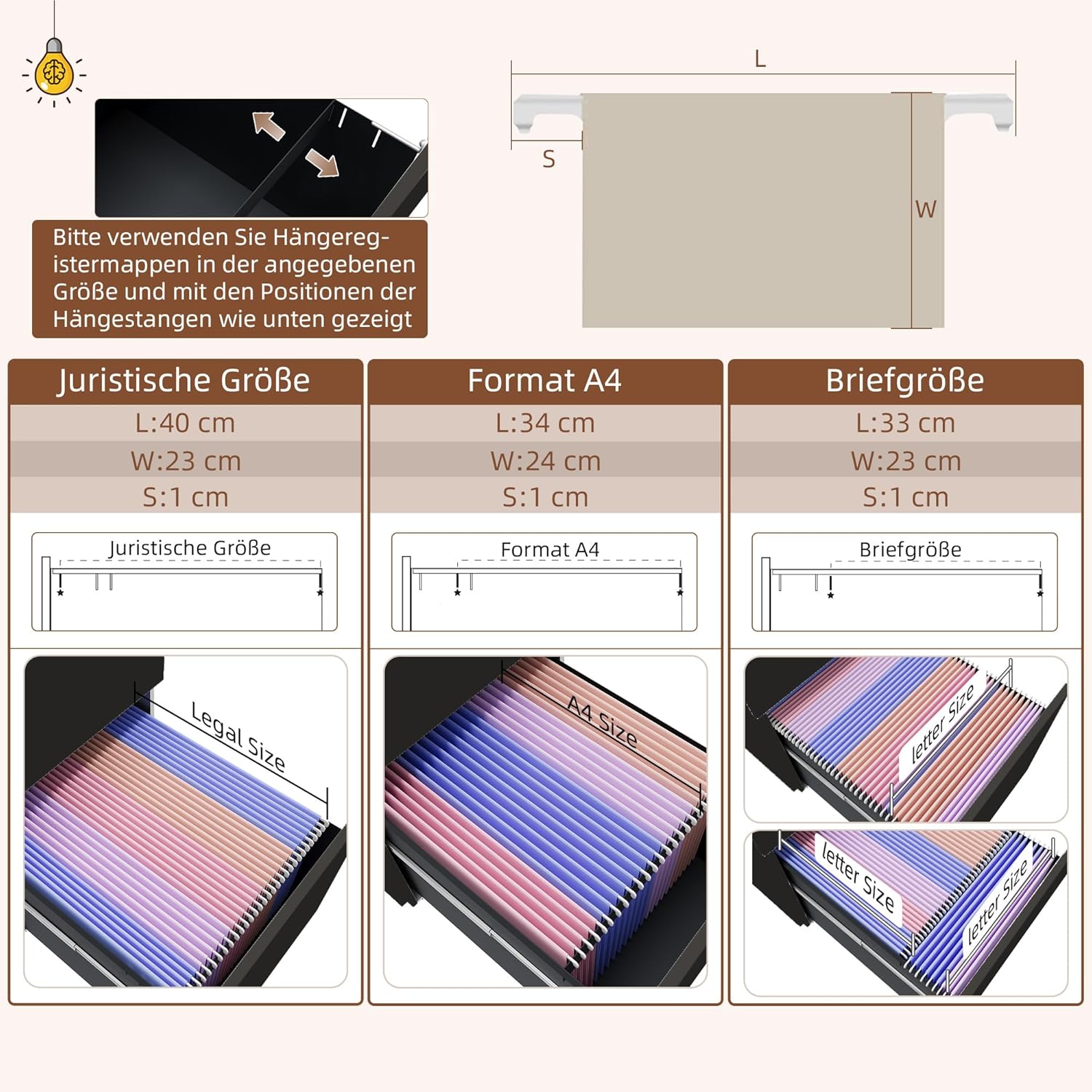 • Sicherheit an erster Stelle: Dieser Rollcontainer hat Sicherheit als oberste Priorität. Wenn Sie wichtige Dokumente sicher aufbewahren müssen, verfügt die Schublade über ein Schloss mit zwei Schlüsseln. Es ist nicht notwendig, alle Schubladen