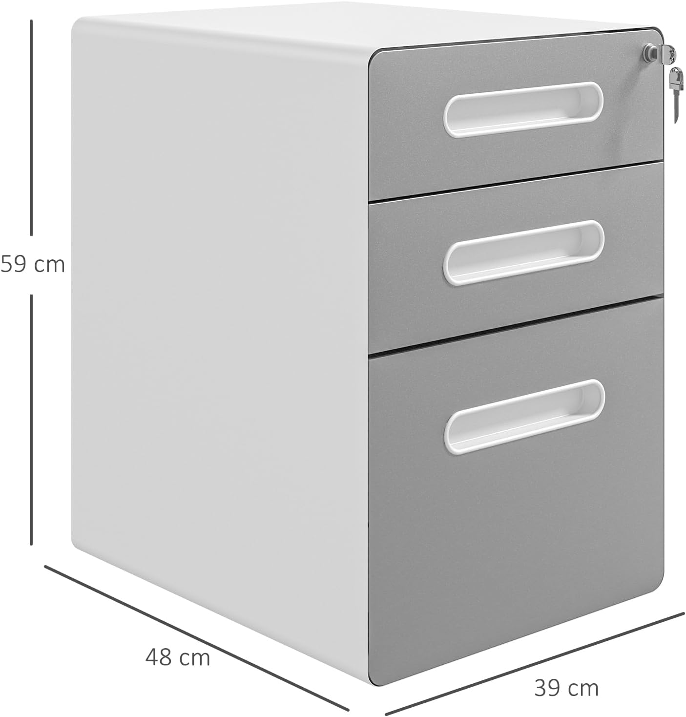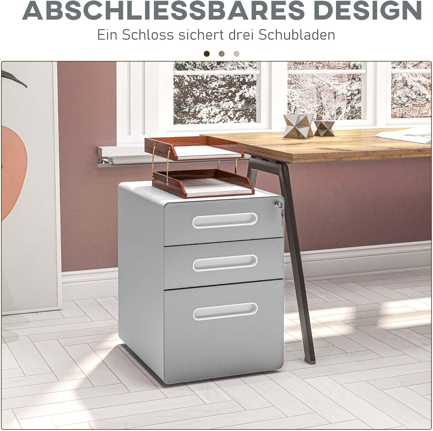 • Sichere Aufbewahrung: Die oberste Schublade des Rollcontainers ist mit einem Schloss ausgestattet, das alle drei Fächer gleichzeitig verschliesst. Zwei Schlüssel sind im Lieferumfang enthalten, damit Sie immer einen zur Hand haben