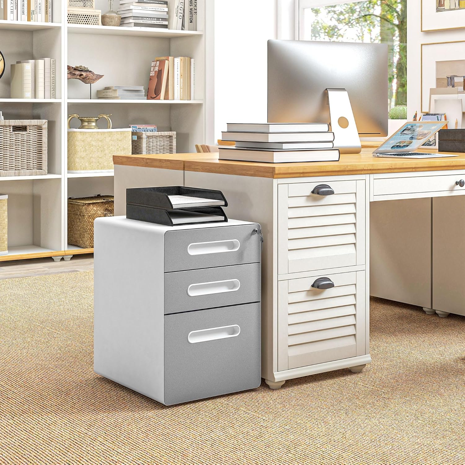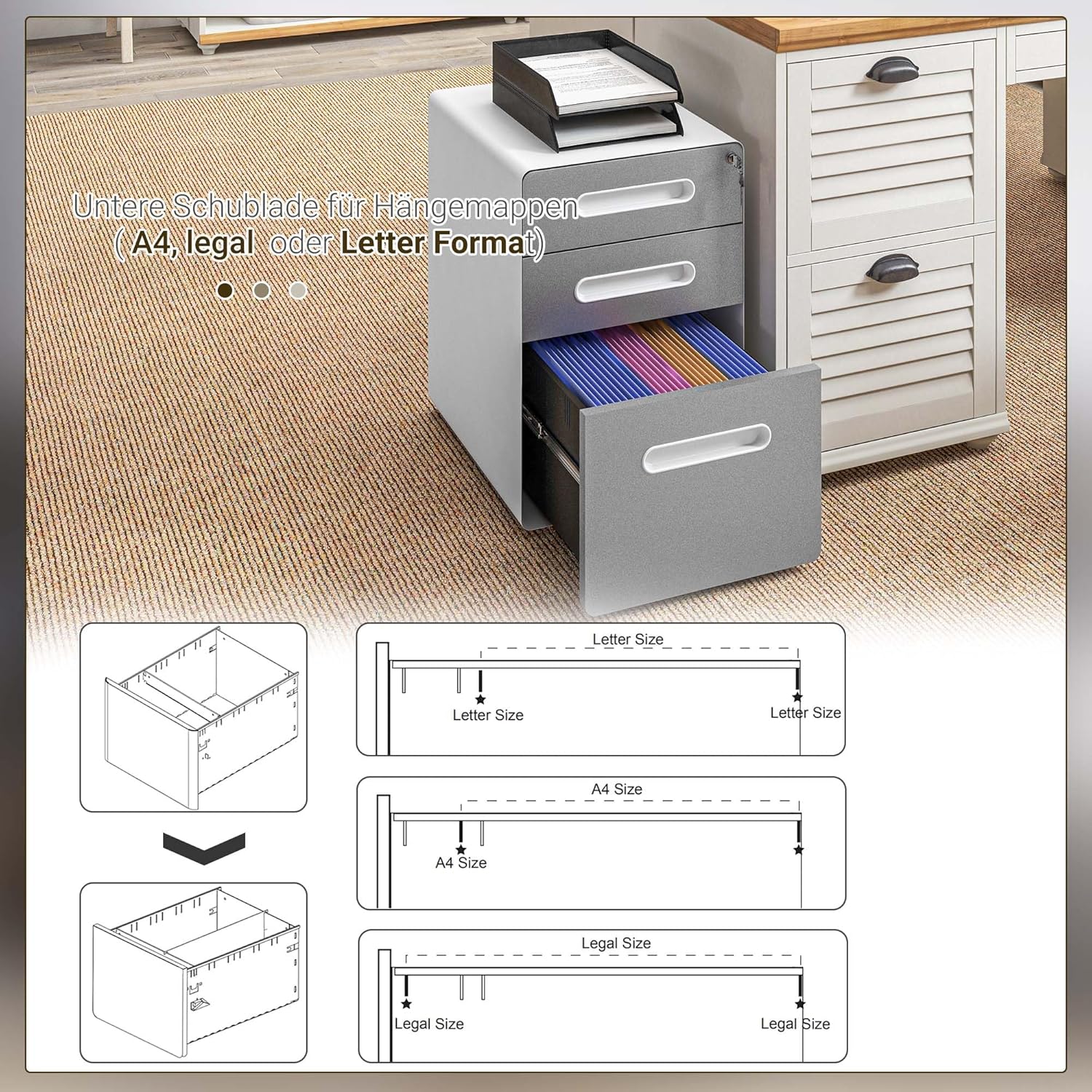 • Vielseitiger Stauraum: Mit einem Hängeregister und zwei Schubladen bietet dieser Aktenschrank ausreichend Platz für Notizbücher, Stifte, Briefe und weiteres Büromaterial im A4- und A5-Format