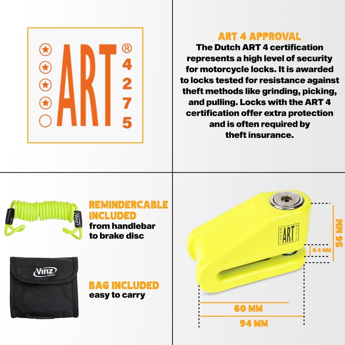 - QUALITÄTSZEICHEN - Dieses Schloss wurde von der Stiftung ART genehmigt und wird daher von den meisten Roller- und Motorradversicherungsgesellschaften empfohlen. Die Stiftung ART hat dieses Schloss unabhängig geprüft und bewertet mit einen ART 4