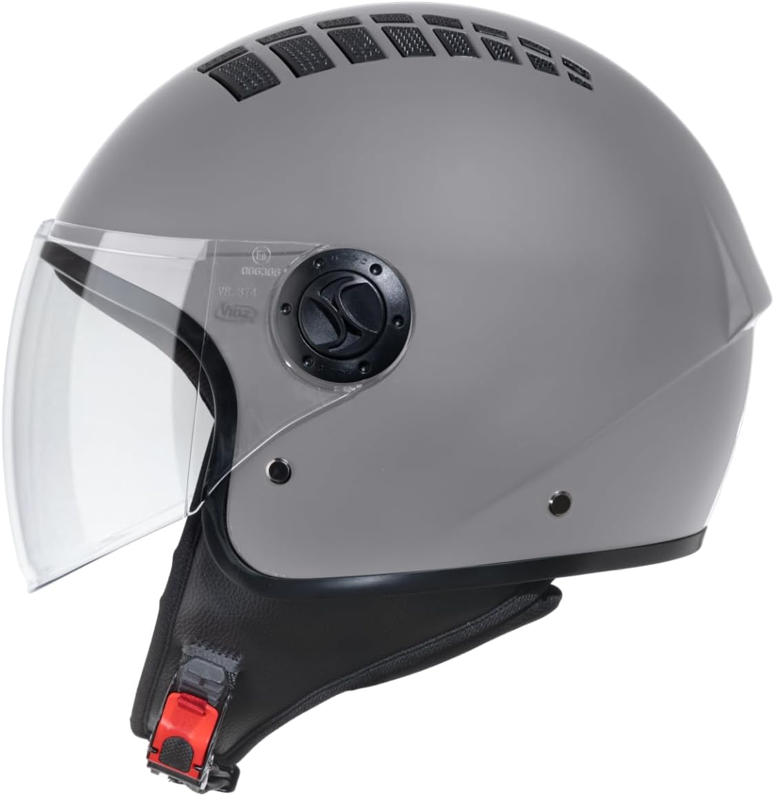 PRODUKTBESCHREIBUNGEN VINZ Como Motorradhelm / Jethelm Jet Helm Fashionhelm mit Visier Einen optimalen Schutz bietet unser VINZ Jethelm Jet helm Fashionhelm mit stilvollem Design und hochwertiger Verarbeitung. Mit die herausnehmbaren hochwertiges Innenfutter versprechen höchsten Tragekomfort für ein absolut entspanntes Fahrgefühl. Das Innenfutter lässt sich leicht herausnehmen und waschen. Verstellbarer, Kinnriemen mit Schnellverschluss-Schnalle und breitem Kinnband. Eine grosses Sichtfeld hat die klare und kratzfeste Visier. Ein regulierbare Belüftungssystem sind im Kopfbereich verfügbar. Dieser Jethelm ist in den Grössen XS, S, M, L und XL erhältlich. Grösse XS: 53-54 cm Kopfumfang Grösse S: 55-56 cm Kopfumfang Grösse M: 57-58 cm Kopfumfang Grösse L: 59-60 cm Kopfumfang Grösse XL: 60-61 cm Kopfumfang Die Oberfläche ist einfach zu reinigen und sieht rasant aus. Genormte Sicherheit mit der aktuellen ECE 22.06 Europanorm-Nummer.