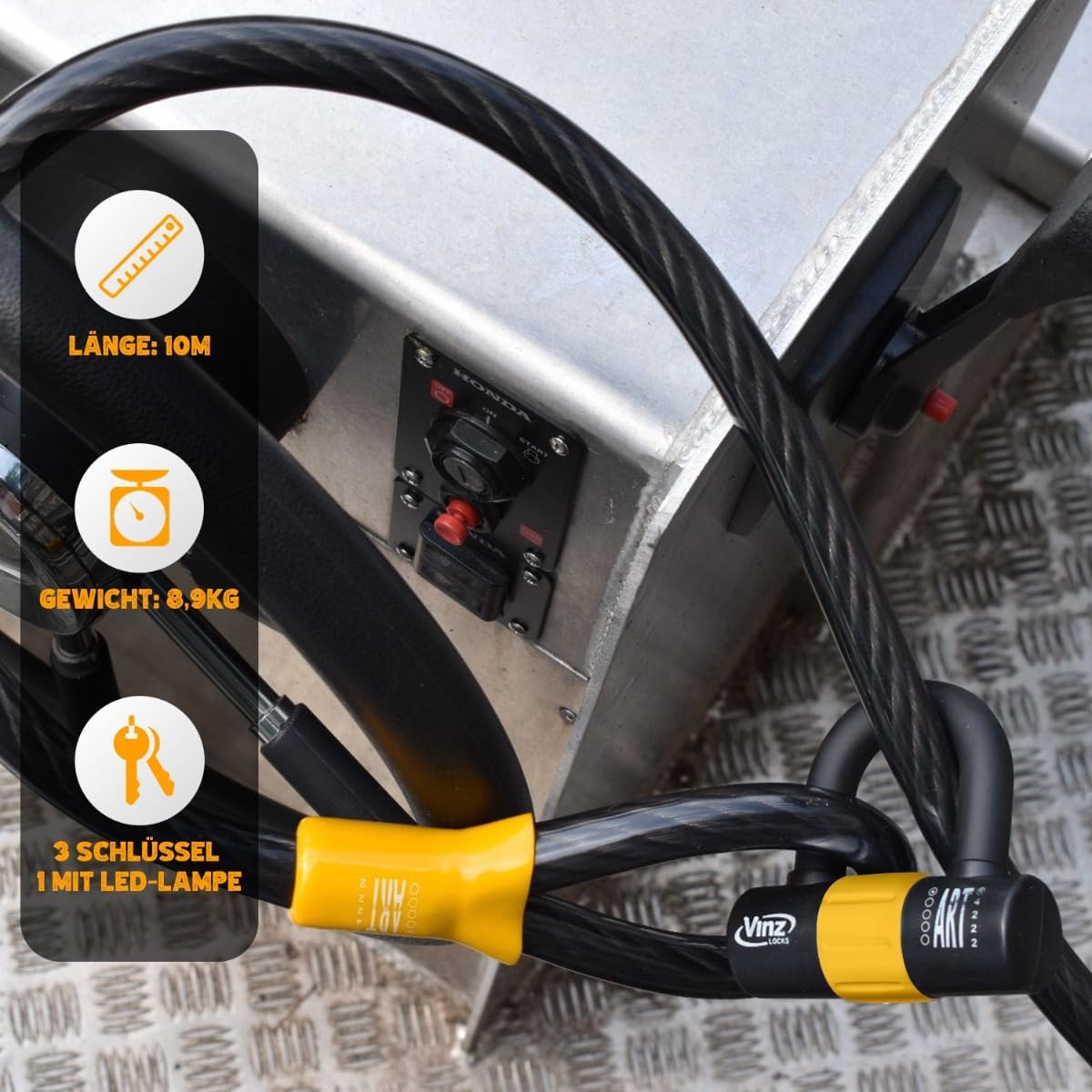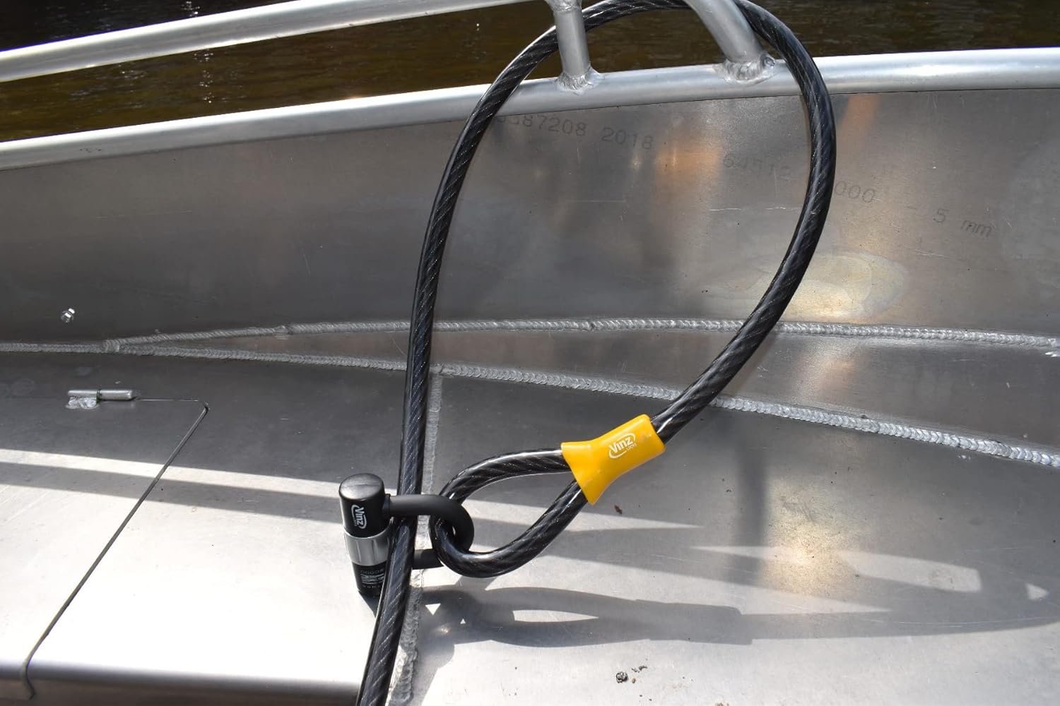 - HOHE QUALITÄT - Diese VINZ Kibo Schlaufenkabel / Kabelschloss ist aus dickem Stahl und einer Zinklegierung hergestellt und bietet einen hohen Widerstand beim Schneiden und Sägen. Dieses Schloss ist Wasserdicht und korrosionsschutz. Das bedeutet, dass