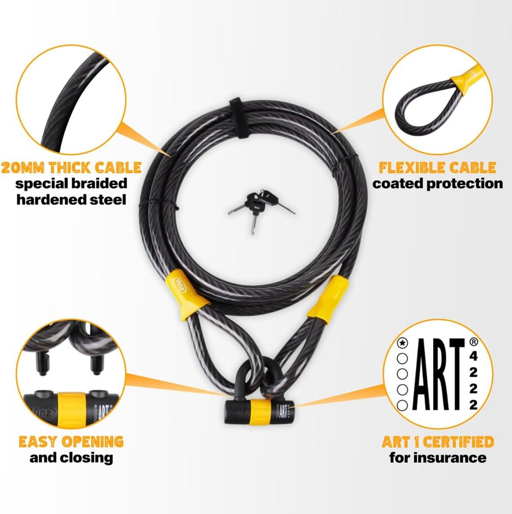 - QUALITÄTSZEICHEN - Das Kabelschloss hat ein ART 1 Gütezeichen und wird daher von den meisten Fahrradversicherungsgesellschaften und bootsversicherungsgesellschaften empfohlen. Stiftung ART hat dieses Kabelschloss unabhängig geprüft und bewertet. Dies