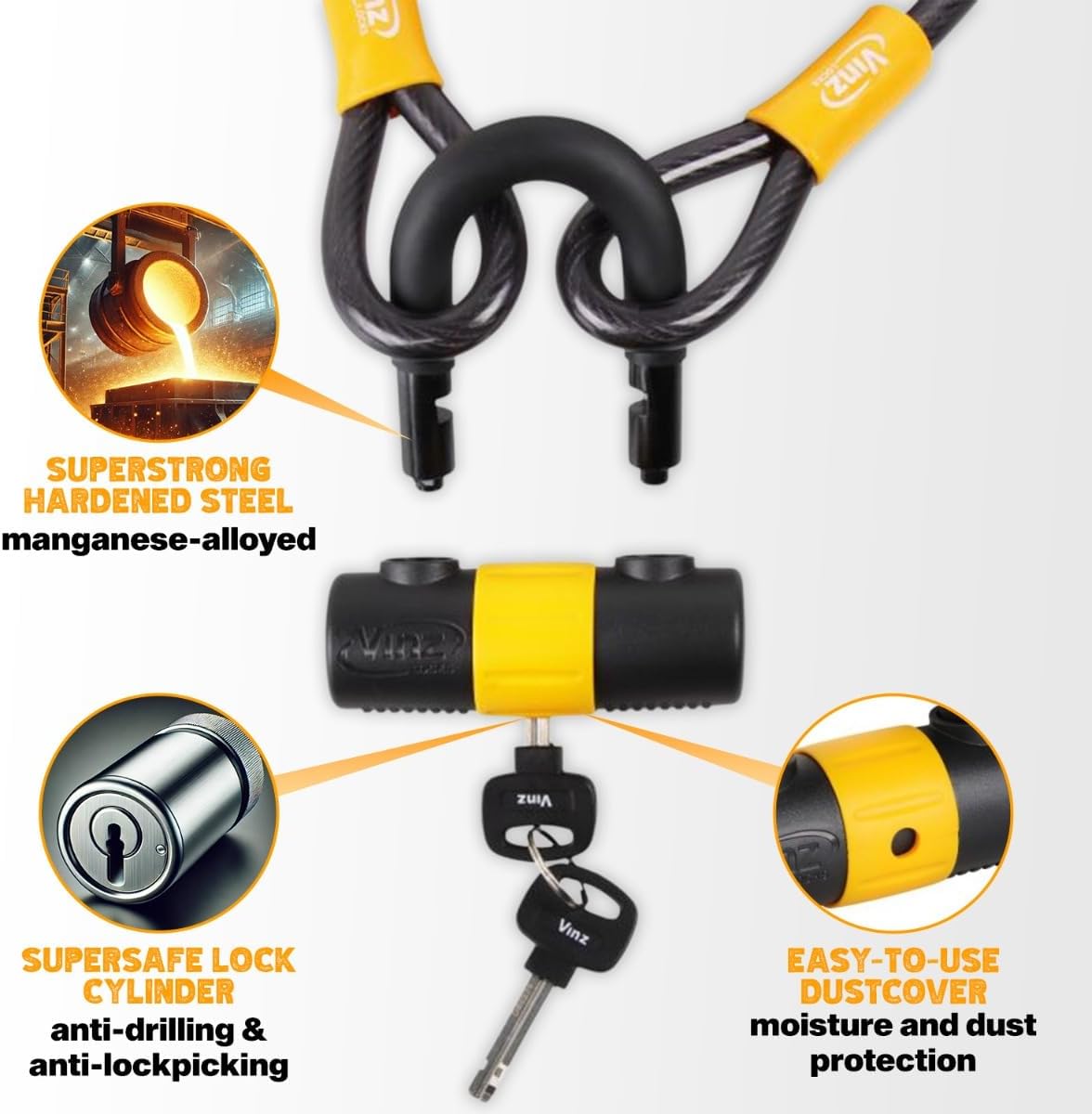 - HOHE QUALITÄT UND SECURITY - Diese Kabelschloss ist aus dickem Kohlenstoffstahl und einer Zinklegierung hergestellt und bietet einen hohen Widerstand beim Schneiden und Sägen. Dieses Schloss ist Wasserdicht und korrosionsschutz. Das bedeutet, dass