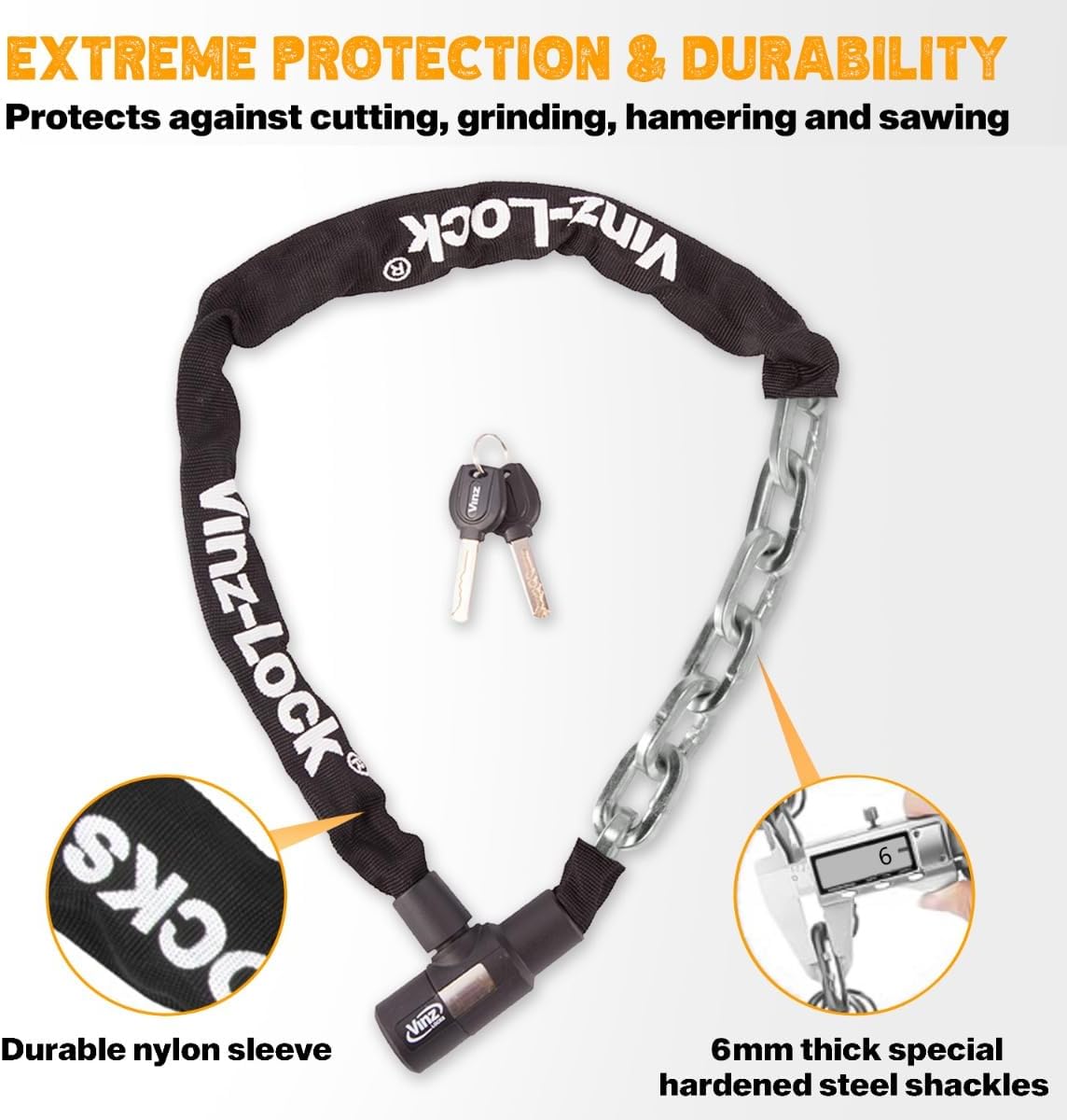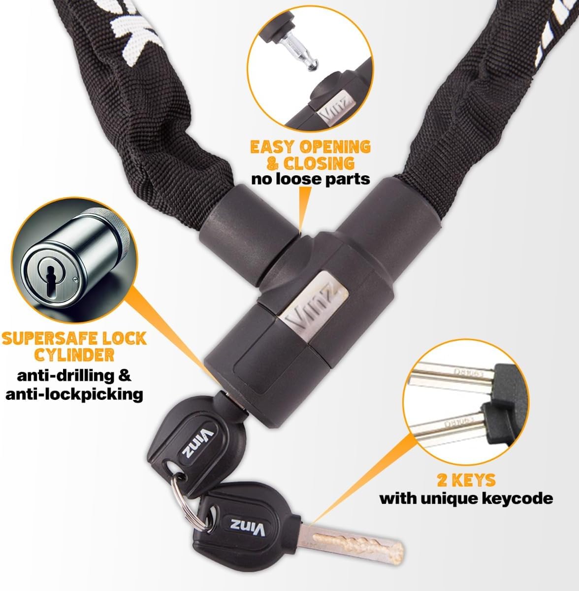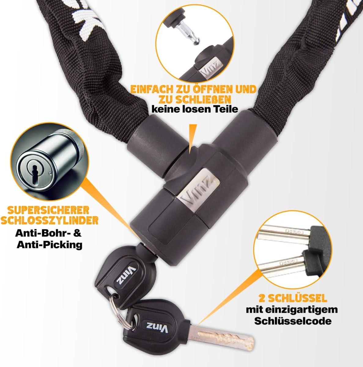 - HOHE QUALITÄT - Diese VINZ Ventoux Kettenschloss sind aus extra dickem Stahl und einer Zinklegierung hergestellt und bietet einen hohen Widerstand beim Schneiden und Sägen. Dieses Schloss ist Wasserdicht, fallschutz und korrosionsschutz. Das bedeutet,