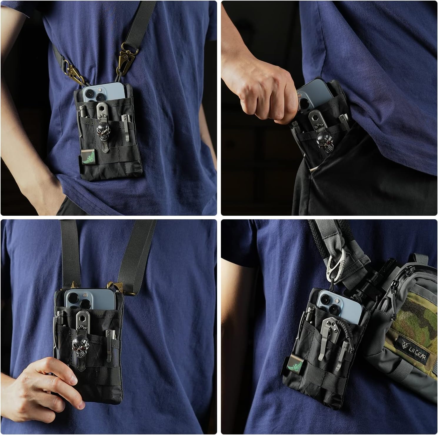 - 【Klein EDC pouch für den täglichen Gebrauch】Diese EDC Taschen Organize ist klein und leicht zu tragen. Es kann mit einem Gurt als kleine Schultertasche getragen oder brustbeutel klein, oder mit einem Karabiner kombiniert werden, um es an Ihrem