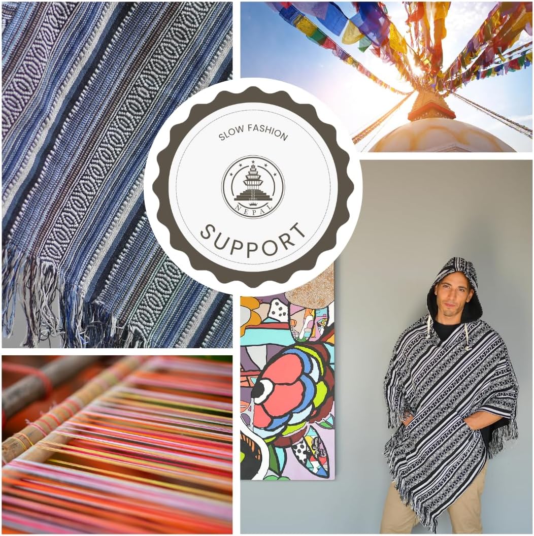 - MATERIAL: Das Material unseres Poncho Herren XXL ist buntes, dickeres Baja-Material (100 % Baumwolle) auf der Aussenseite und 100 % leichtes Baumwollmaterial als Innenfutter. Es ist super bequem, komfortabel und von höchster Qualität. Unser Poncho