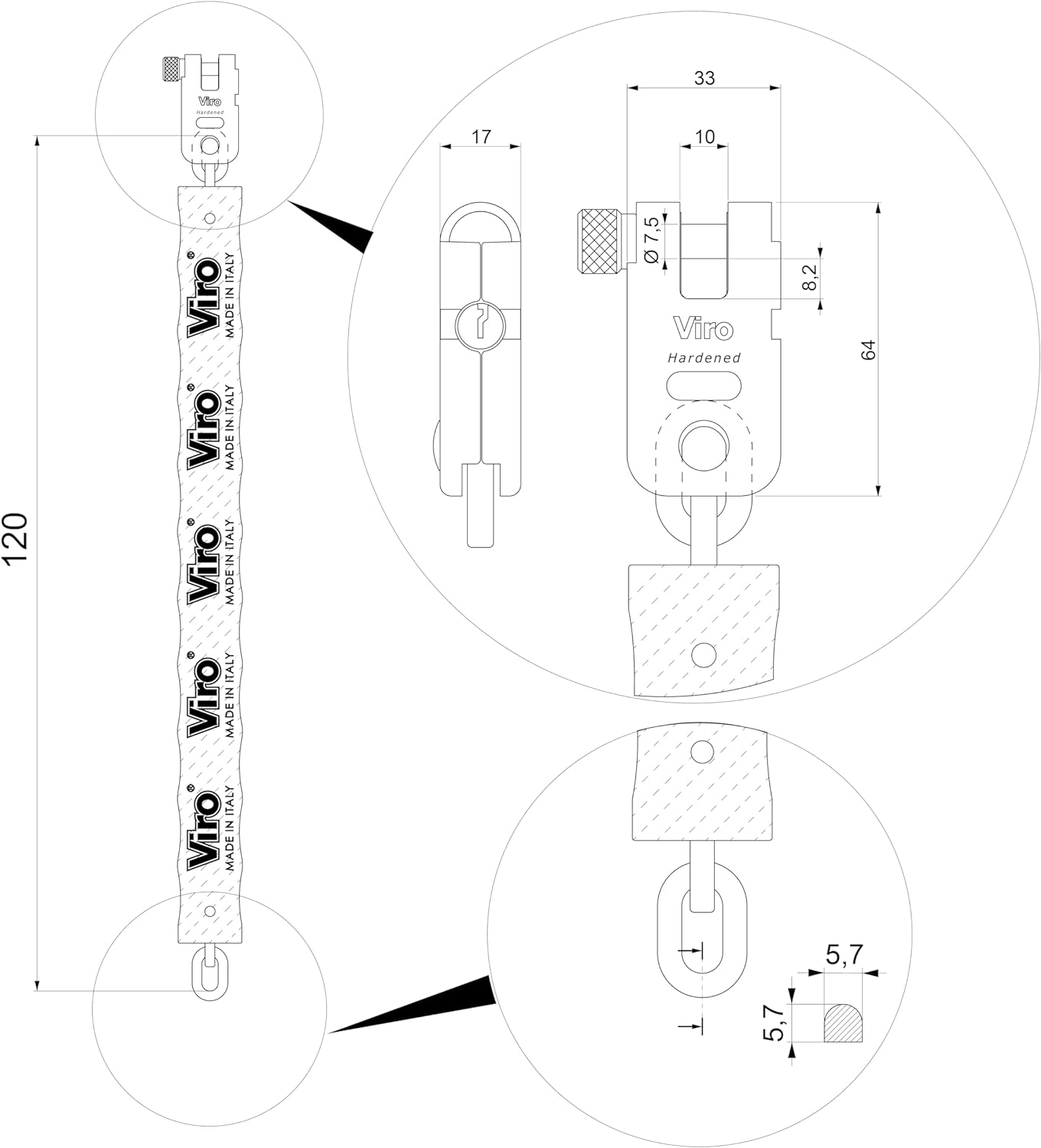 Viro Luc/vir55120 Fahrradschloss Silber/gelb 1200 x 5,5 mm