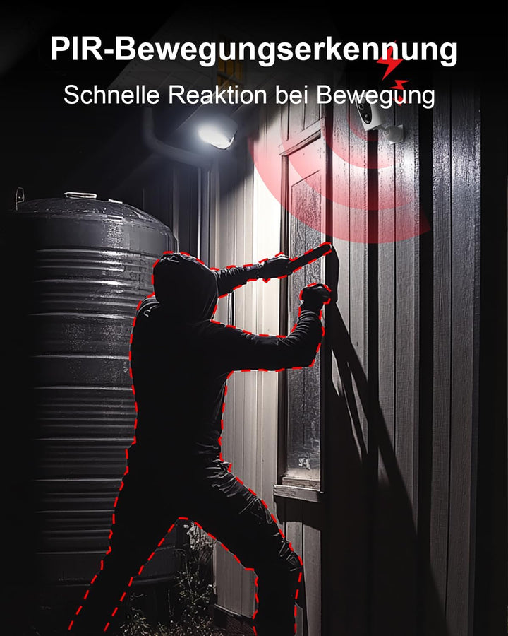 - 【PIR-Bewegungserkennung & Alarmton】Wenn eine Bewegung erkannt wird, sendet die Kamera einen Alarm und Benachrichtigungen an Ihr Smartphone. Durch Drücken der Sprechtaste können Sie in Echtzeit kommunizieren.