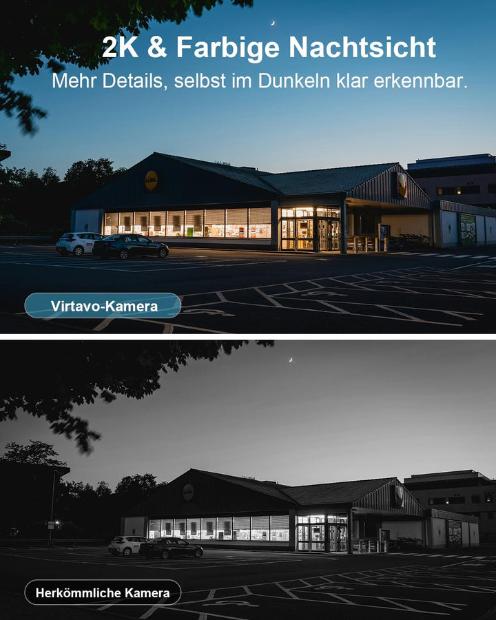 - 【2K QHD-Bildqualität & Starlight-Farbnachtsicht】3 Millionen FHD-Pixel in Kombination mit der einzigartigen Sternenlicht-Nachtsichttechnologie sorgen dafür, dass auch bei Nacht kein Detail übersehen wird.Die H.265-Komprimierungstechnologie zeichnet