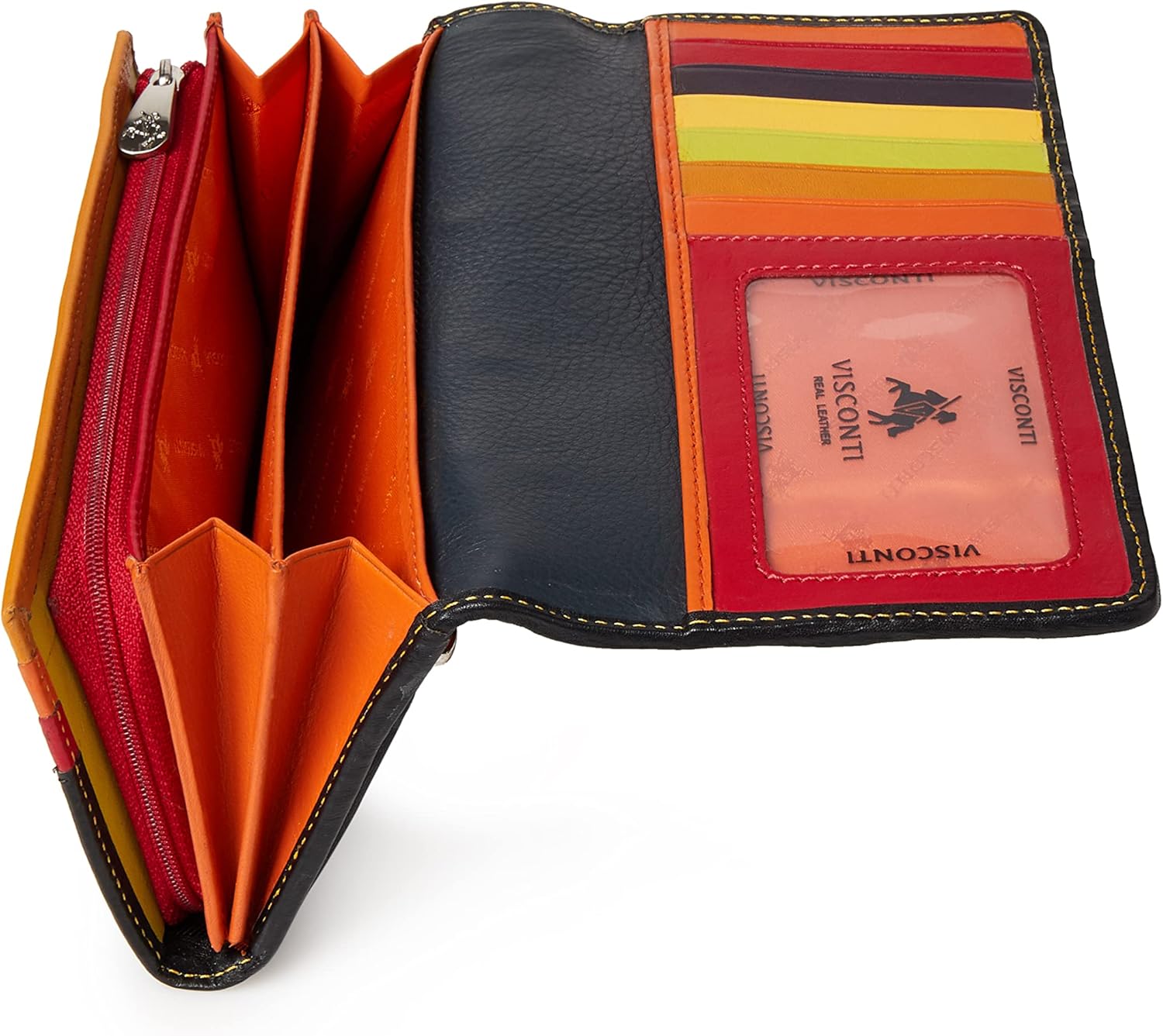 VISCONTI ® Geldbeutel Damen Leder RFID Schutz Portemonnaie Damen Geldbörse Bifold Mehrfarbig Portmon