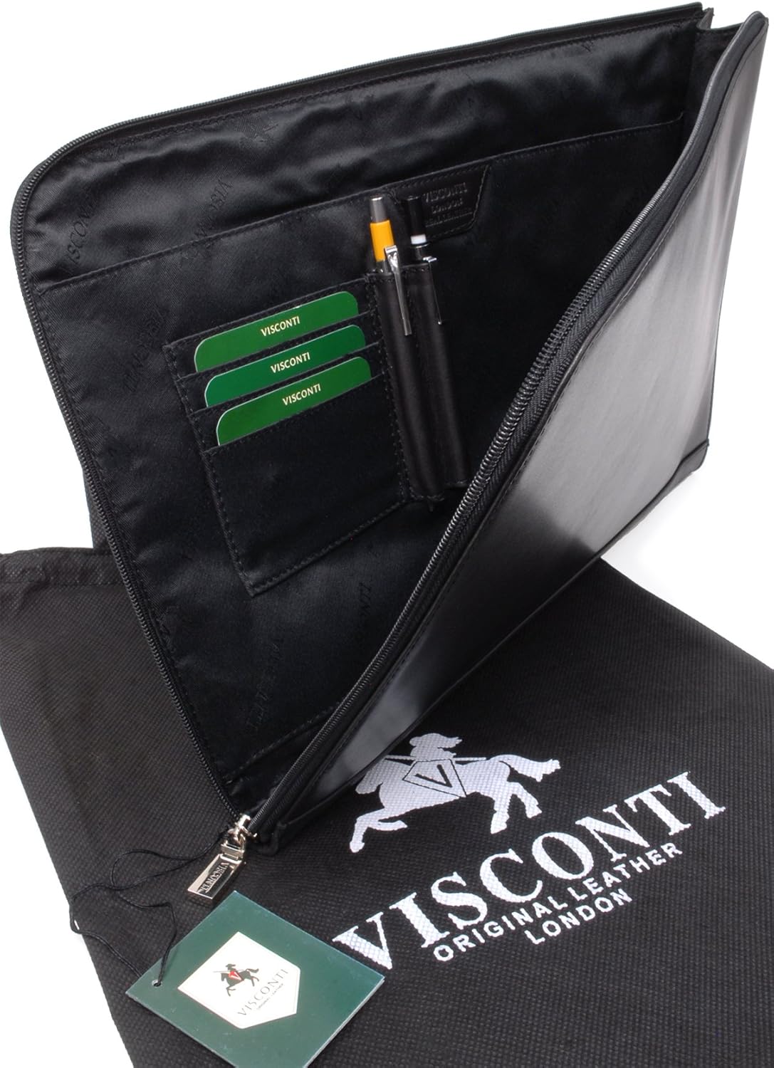 VISCONTI - Leder - A4 Reissverschluss Konferenzmappe Schreibmappe - BOND - (18238) - Schwarz, Schwar