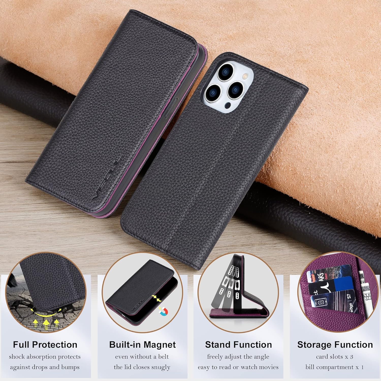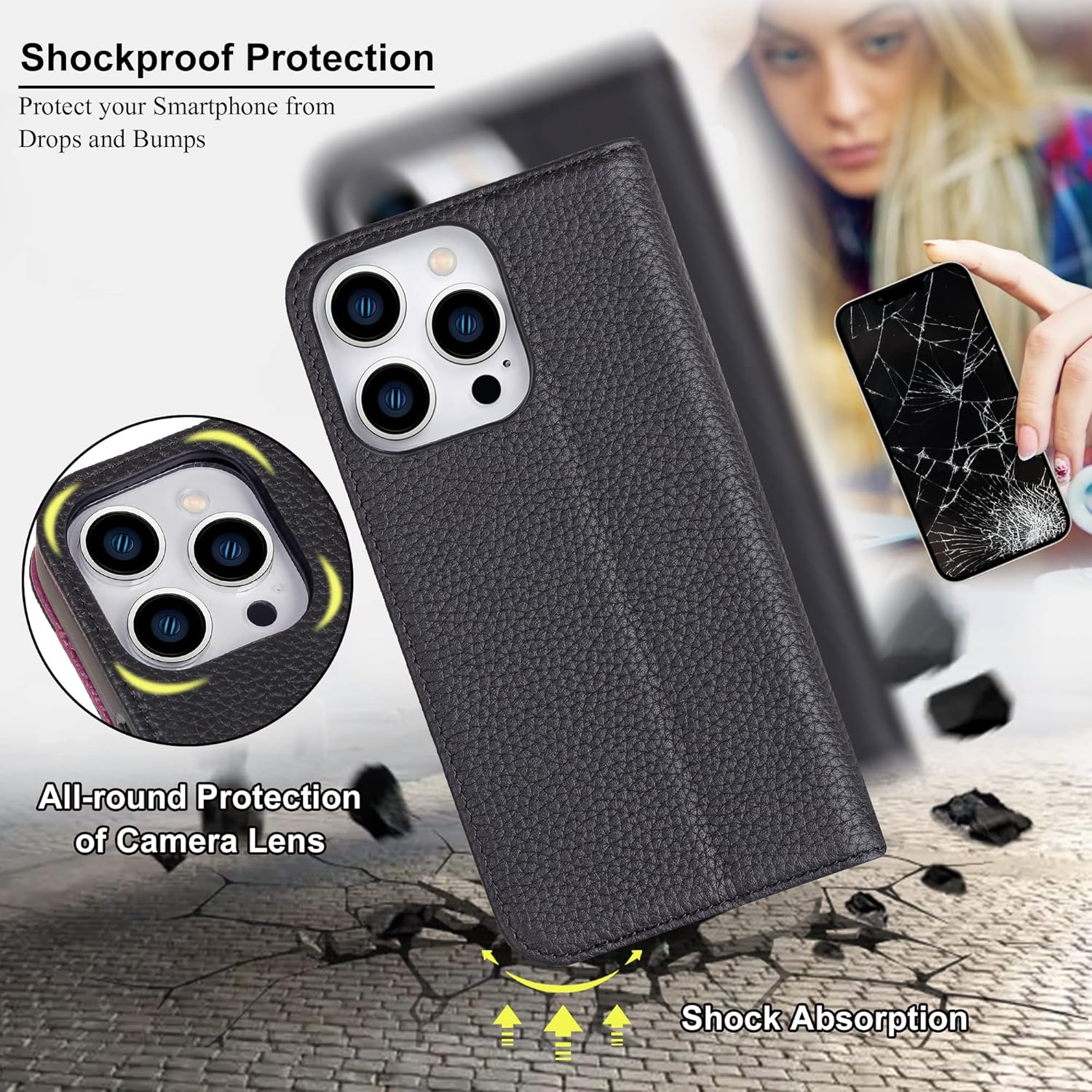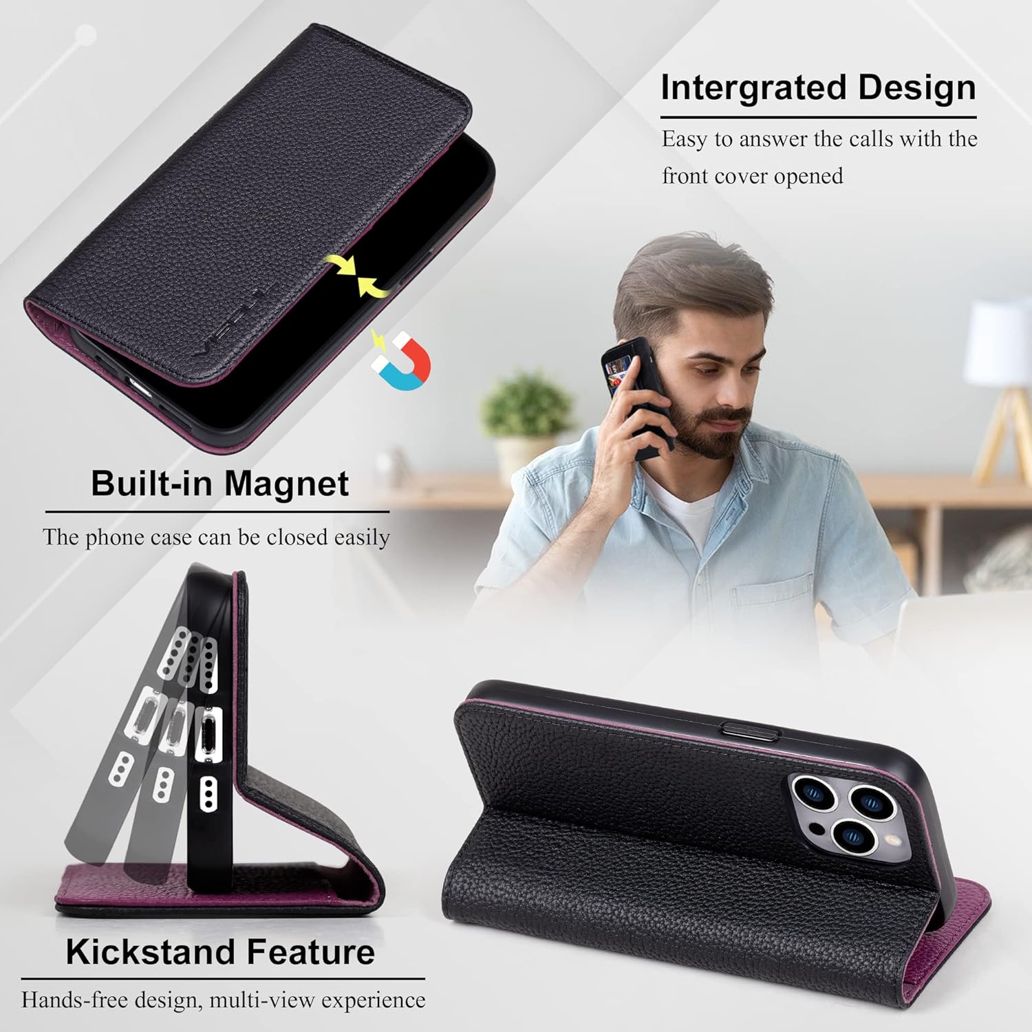 - 【Präziser Schnitt und Standfunktion】: Präzise Aussparungen ermöglichen einfachen Zugriff auf alle Tasten, Anschlüsse und Kameras, ohne dass die Hülle entfernt werden muss. iPhone 13 Pro Folio Abdeckungen mit Klappfunktion ermöglichen es Ihnen,