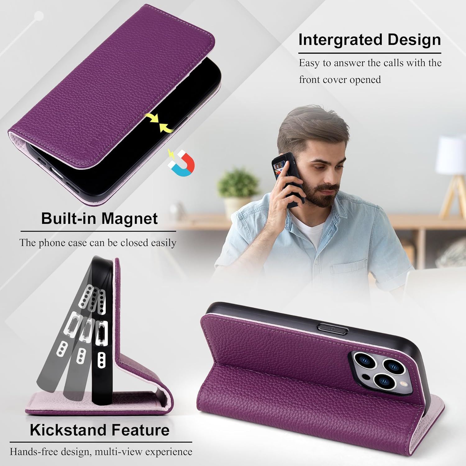 - 【Präziser Schnitt und Standfunktion】: Präzise Aussparungen ermöglichen einfachen Zugriff auf alle Tasten, Anschlüsse und Kameras, ohne dass die Hülle entfernt werden muss. iPhone 13 Pro Folio Abdeckungen mit Klappfunktion ermöglichen es Ihnen,