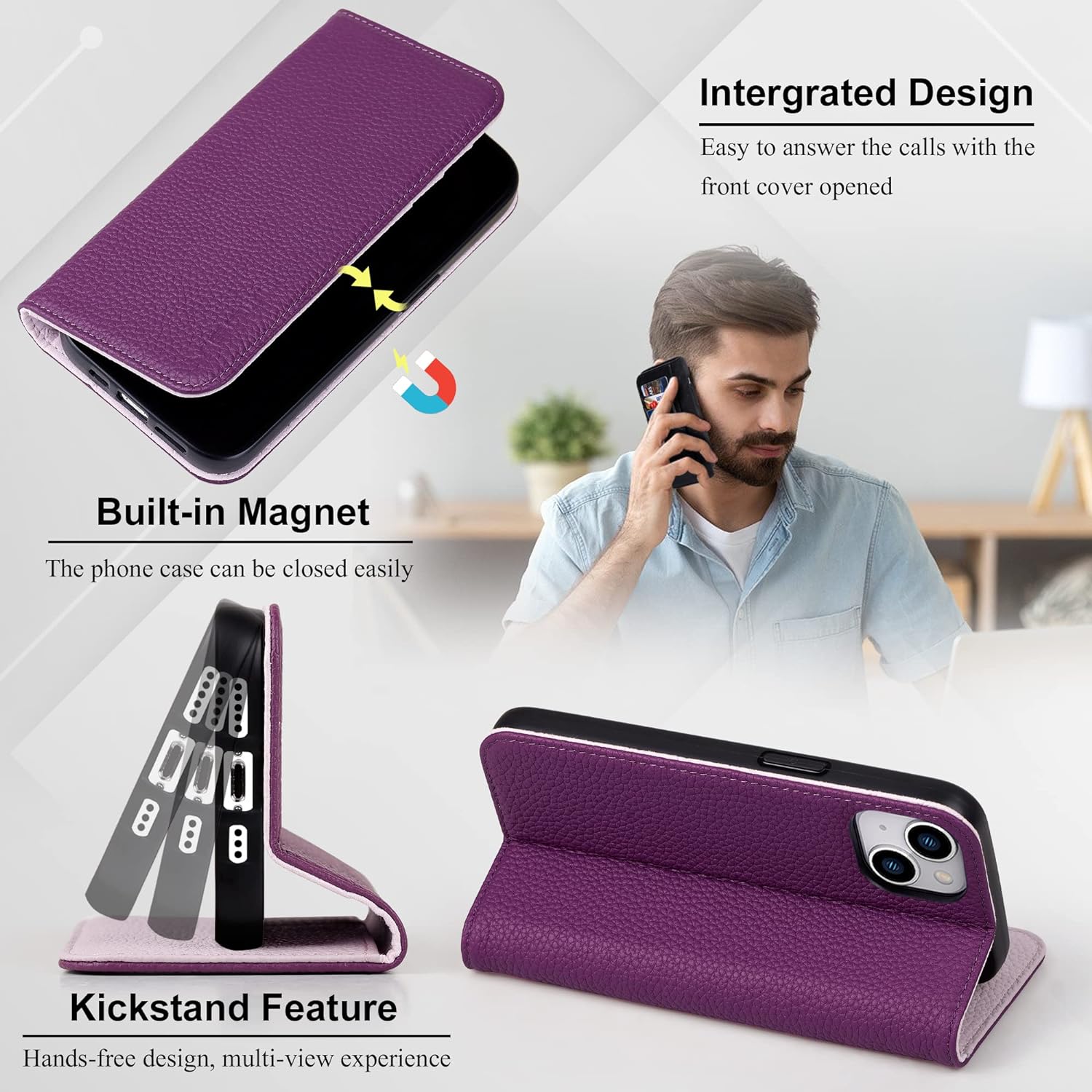 - 【Präziser Schnitt und Standfunktion】: Präzise Aussparungen ermöglichen einfachen Zugriff auf alle Tasten, Anschlüsse und Kameras, ohne dass die Hülle entfernt werden muss. iPhone 13 Folio Abdeckungen mit Klappfunktion ermöglichen es Ihnen, den