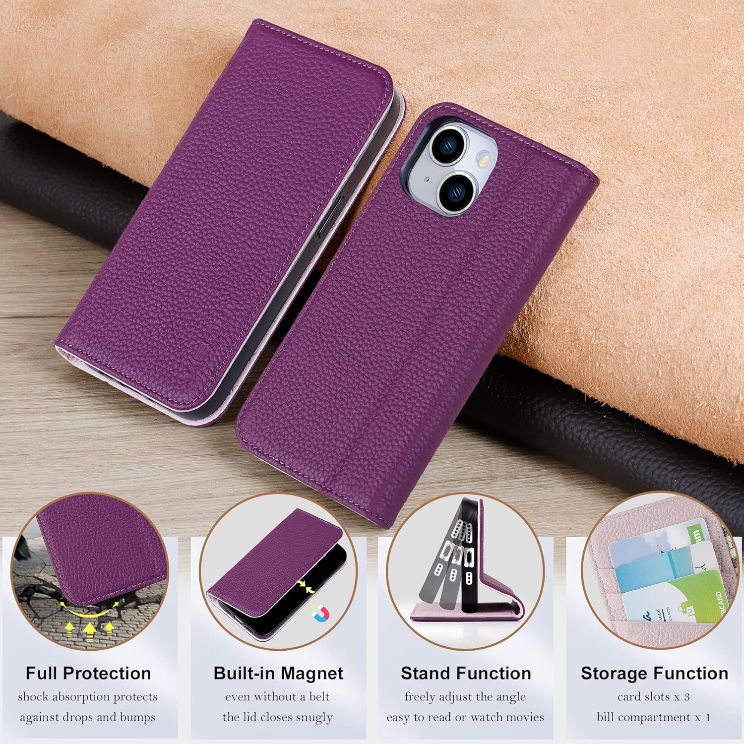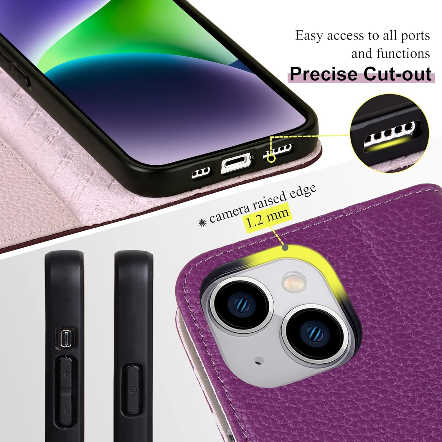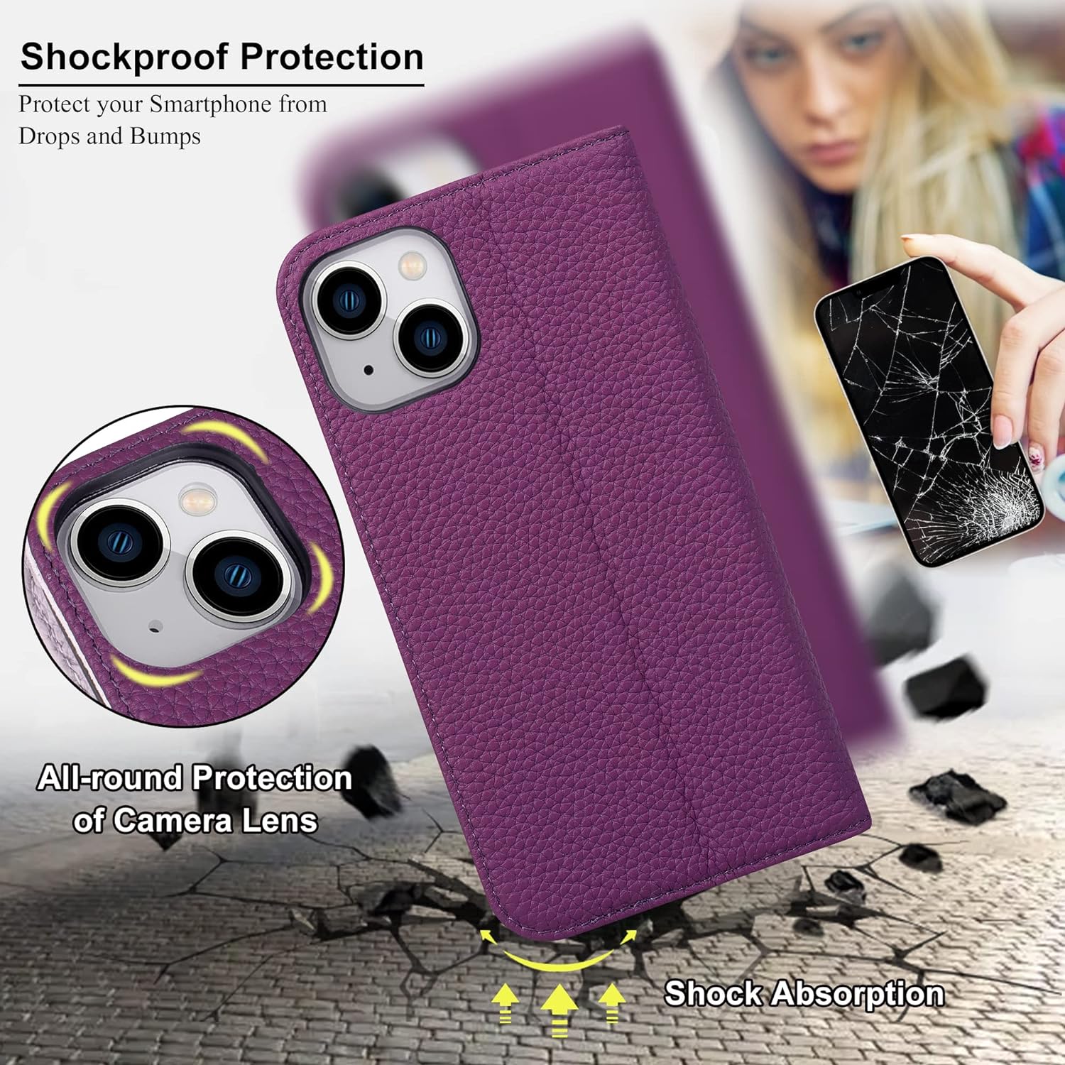 - 【100% ECHTES LEDER】: iPhone 13 Lederhüllen aus hochwertigem Rindsleder, sind langlebig, atmungsaktiv und weich. Das Leder behält die Festigkeit der Fasern und die natürliche Textur der Oberfläche, wodurch jede Handyhülle einzigartig ist.