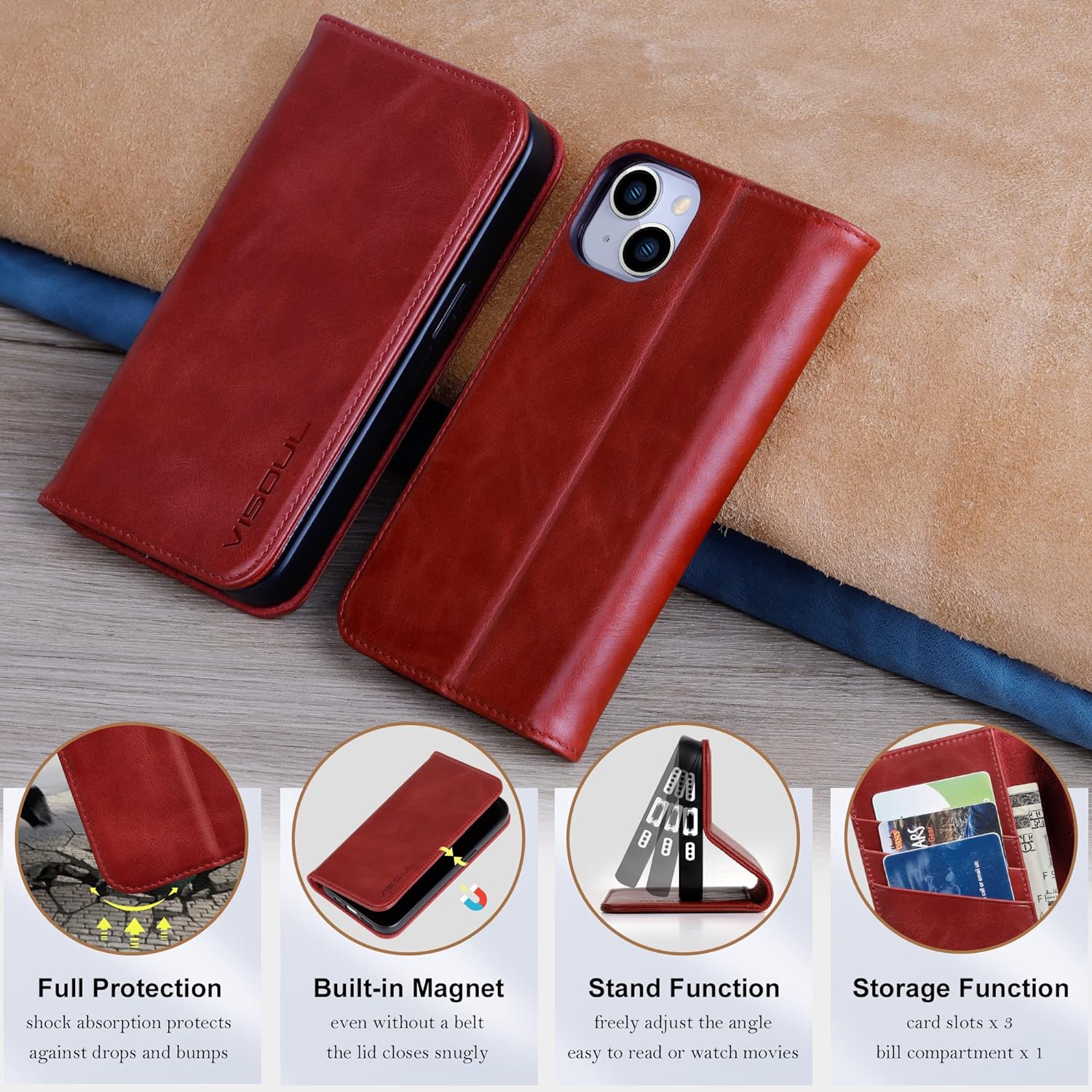 - ✅【Kartenfach】Die Brieftasche ist speziell für ihr Handymodell ausgelegt. Authentisches VISOUL Design mit drei Kreditkartenfächern und einem groβem Fach in der Innenseite. Die Schutzhülle erlaubt dir auch geschlossen Zugang zu allen Knöpfen und