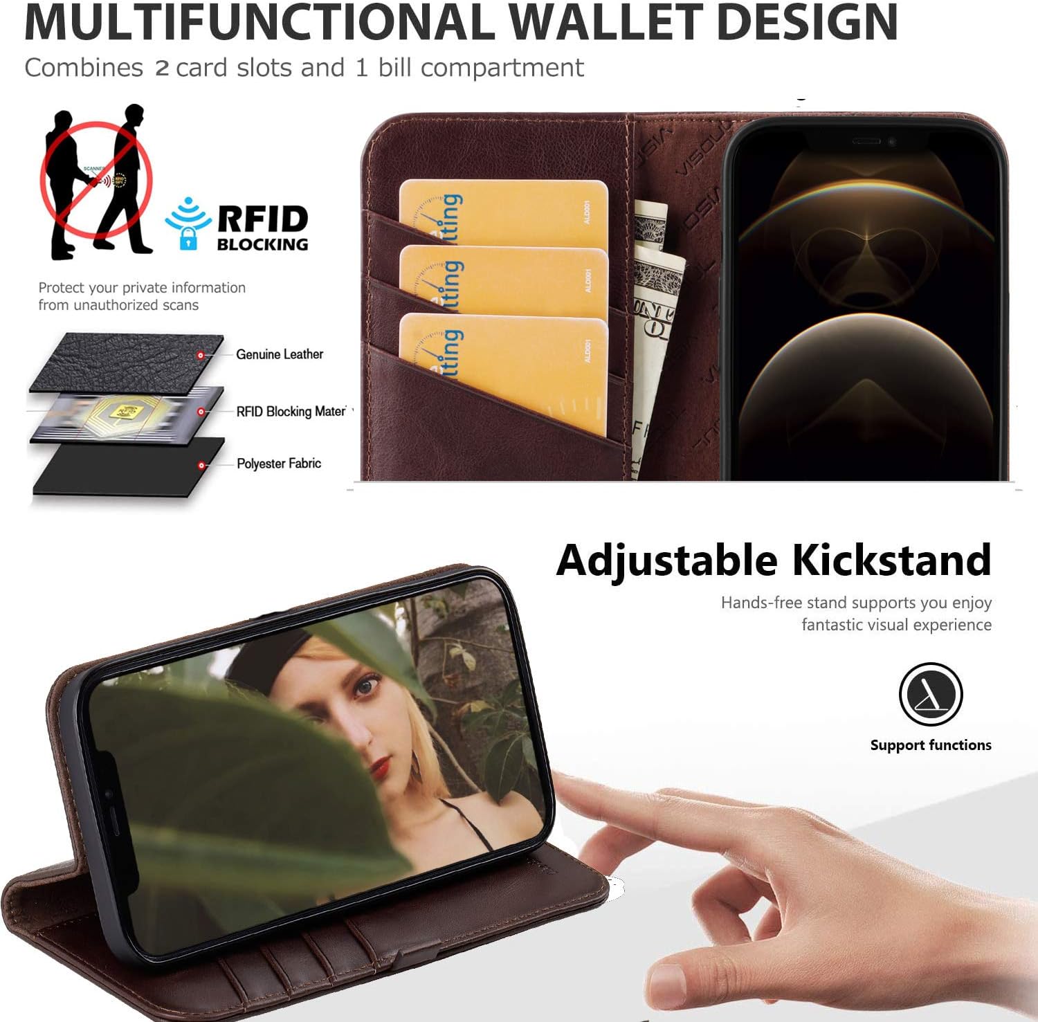 - 【100% echtes Leder】: Visoul iPhone 12 Mini 5,4 Zoll (2020 Release) Hüllen aus hochwertigem Rindsleder, sind strapazierfähig, atmungsaktiv und weich. Das Leder behält die Festigkeit der Fasern und die natürliche Textur der Oberfläche, wodurch