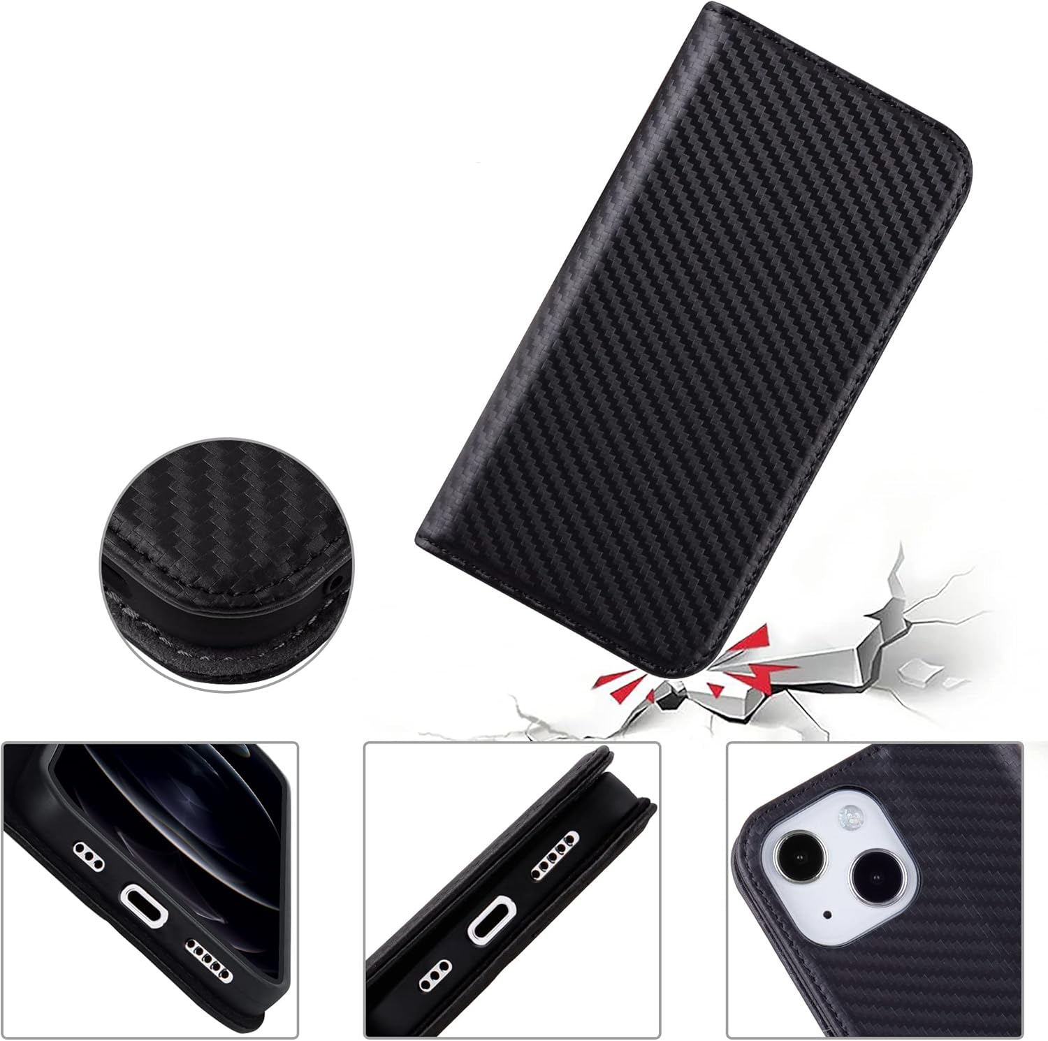- 【100 % Karbonfaser-Leder】: iPhone 13 Lederhüllen aus hochwertiger Kohlefaser, langlebig, atmungsaktiv und weich. Das Leder behält die Festigkeit der Fasern und die natürliche Textur der Oberfläche, wodurch jede Handyhülle einzigartig ist.