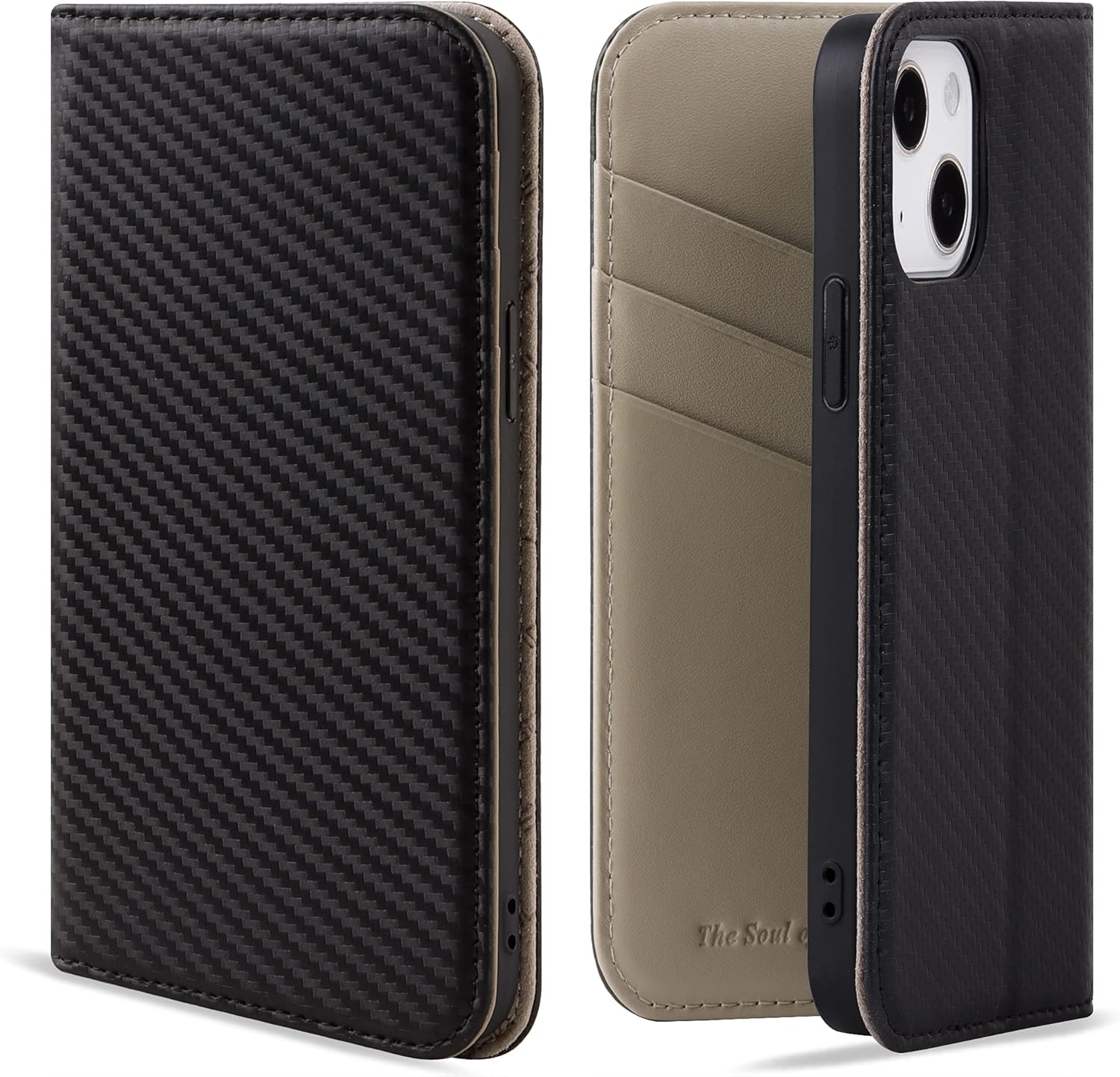 - 【100 % Karbonfaser-Leder】: iPhone 13 Lederhüllen aus hochwertiger Kohlefaser, langlebig, atmungsaktiv und weich. Das Leder behält die Festigkeit der Fasern und die natürliche Textur der Oberfläche, wodurch jede Handyhülle einzigartig ist.