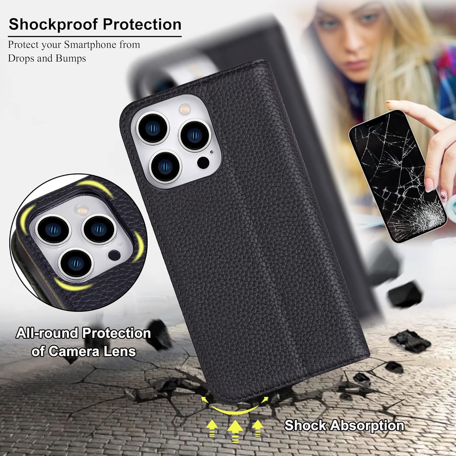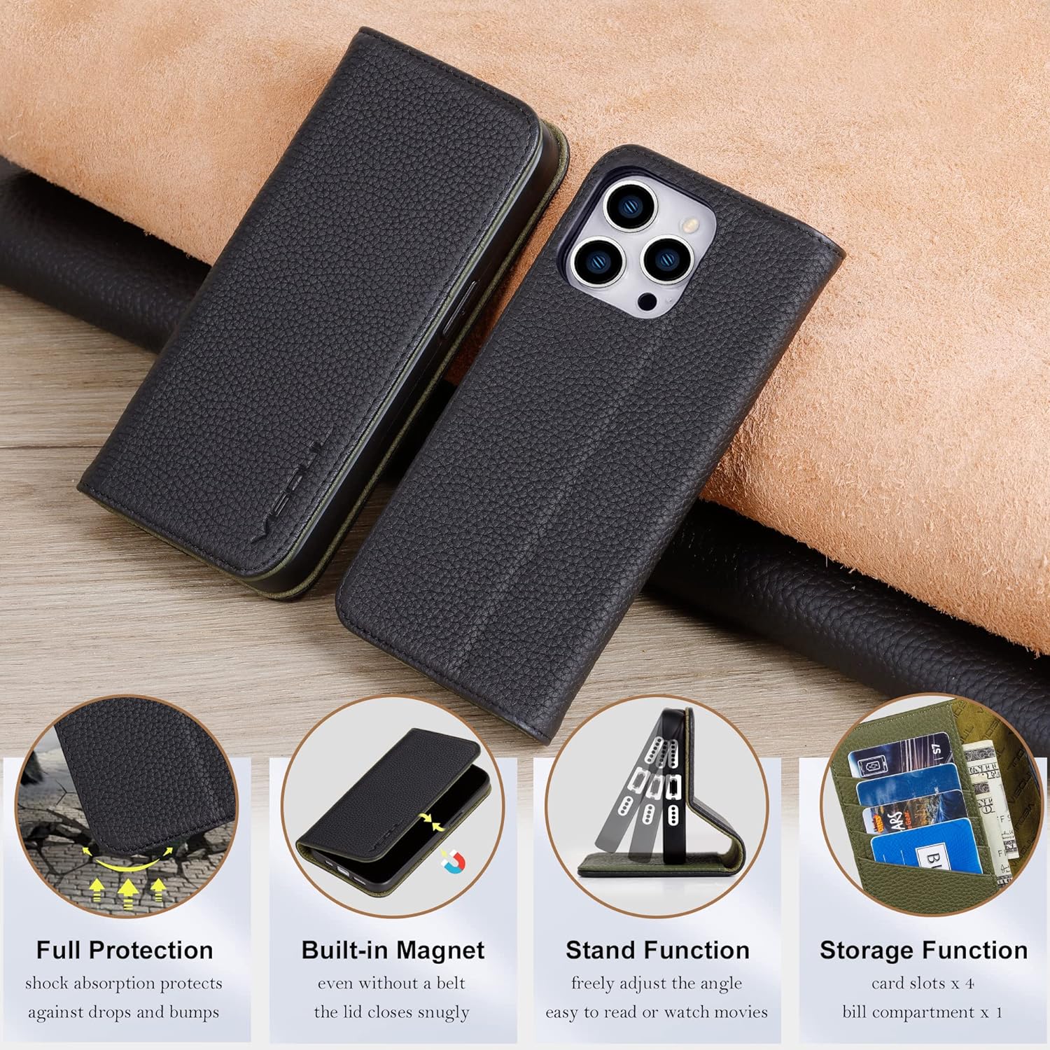 - 【100% ECHTES LEDER】: iPhone 13 Pro Max Lederhüllen aus hochwertigem Rindsleder, sind langlebig, atmungsaktiv und weich. Das Leder behält die Festigkeit der Fasern und die natürliche Textur der Oberfläche, wodurch jede Handyhülle einzigartig ist.
